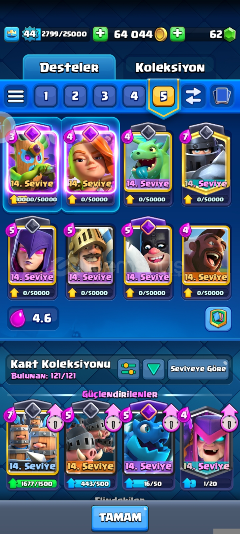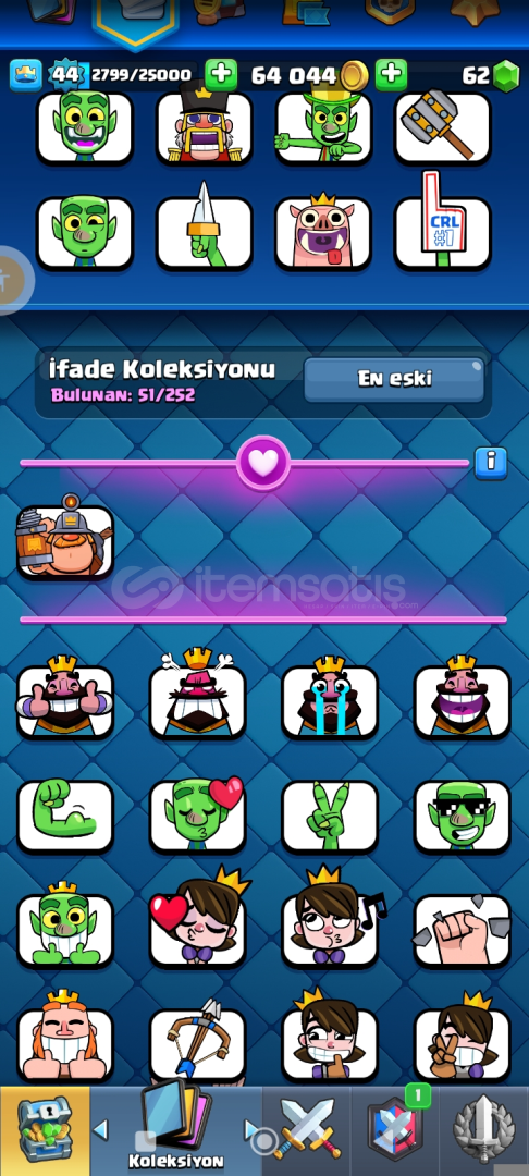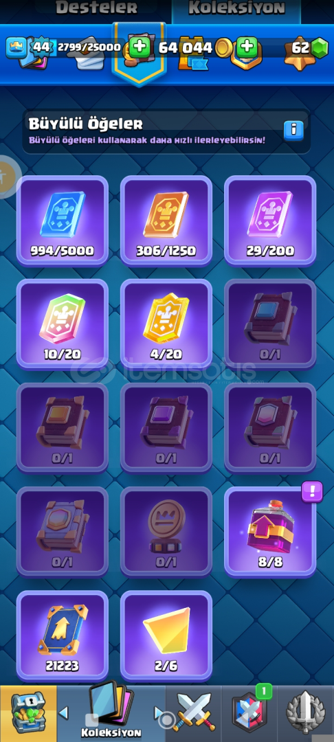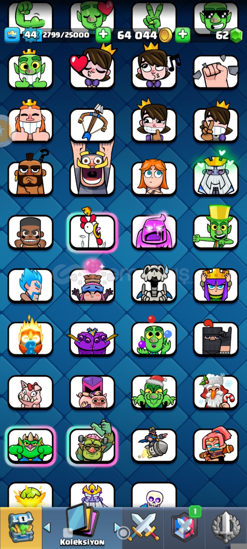 Mail İle Teslim Edilir.51 Adet Mükemmel EMOJİLER14 SEVİYE FUL DESTE44 SEVİYE64.044 ALTIN - 62 ELMAS994 SIRADAN JOKER KART - 306 ENDER JOKER KART - 29 DESTANSI JOKER KART - 10 ADET EFSANEVİ KART - 4 ADET ŞAMPİYON KART - 5 EVRİM PARÇACIĞI 21000 ELİT JOKER KARTİÇİNDEKİLER:CLASH ROYALE121/121 KARAKTER9 EVRİMLER ACAYİPPPDart goblinValkürCELLATBÜYÜCÜOKÇULARTESLAELEKTRO EJDERBOMBACIB...