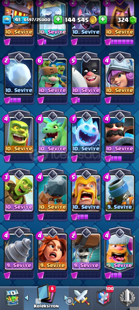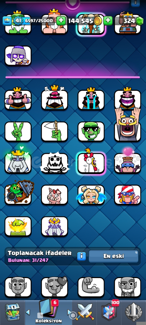 Mail İle Teslim Edilir.51 Adet Mükemmel EMOJİLER14 SEVİYE FUL DESTE41 SEVİYE150000 altınİÇİNDEKİLER:CLASH ROYALE121/121 KARAKTER8 EVRİM 9 a yakın