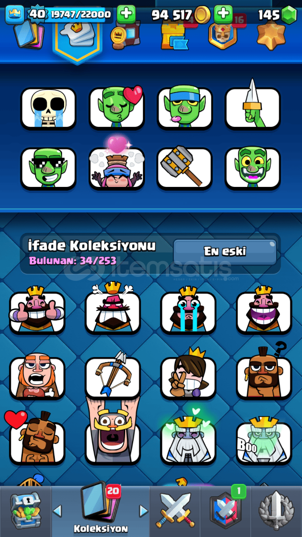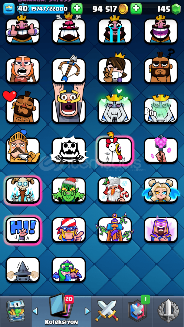 8500 kupa 119 kart 9 evrimli 34 emojili efsane