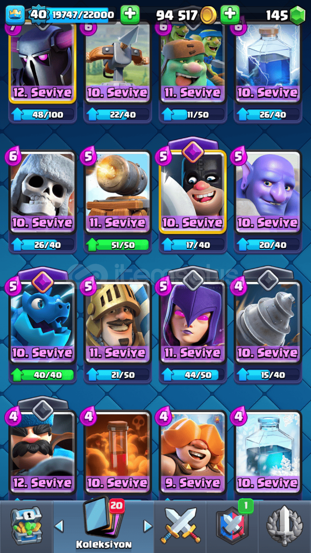 Kart çeşitliliği, evrimli desteler ve özel emojilerle öne çıkan, rekabetçi arenada avantaj sağlayan bir hesaptır.