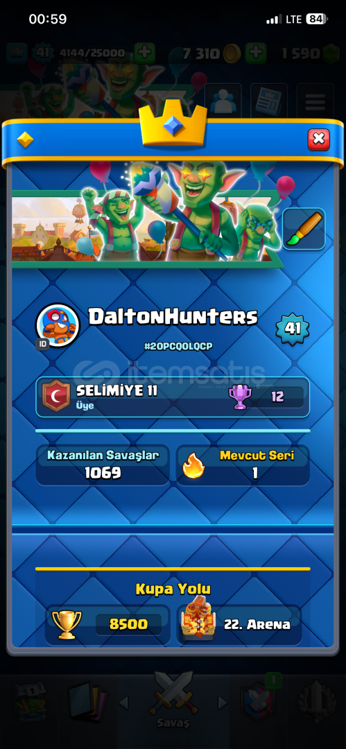 8500Kupa 41 Level 8 Evrimli Hesap.
