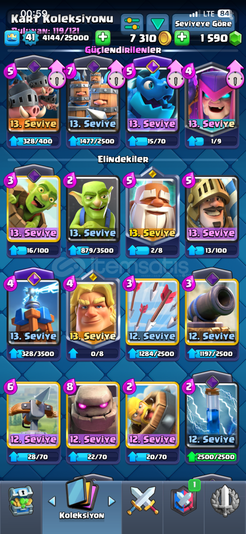 8500 Kupa 1590 Elmas 41 Level 8 Evrimli Hesap