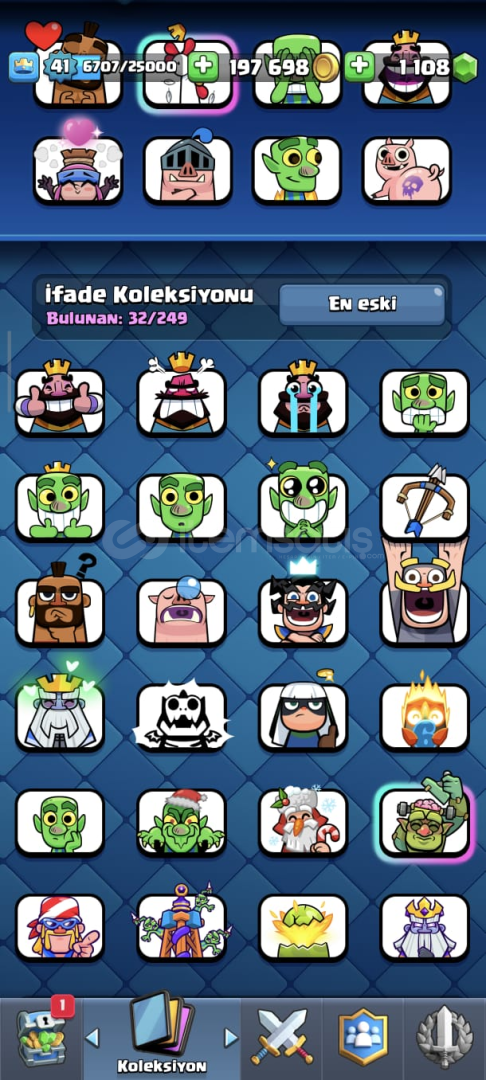 Hesaba detaylıca bakmak için: https://royaleapi.com/player/20UGVR20CHesaplar asla geri çekilmez!Hesap koruması aktif değildir!Yeni güncelleme sebebiyle sezon geçişlerinde CLASH ROYALE HESAPLARINDA kupa kaybı yaşanabiliyor bilginize.Sipariş Sonrasında oluşacak sonular için kalıcı destek!"Neden beni tercih etmelisiniz?"+660 Başarılı işlem.Yüksek müşteri memnuniyeti.Supercell ...