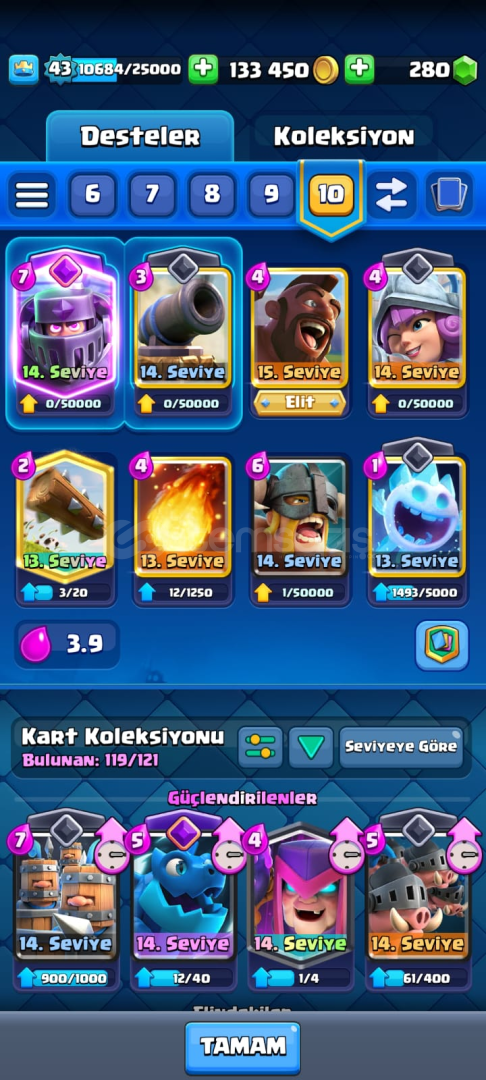 Hesap güzeldir kule birliği 14 seviye. Level 43 alan bin yaşadı. Kart seviyeleri ortalama 12 her istediğiniz meta destesini rahatlıkla maxlaya bilirsiniz