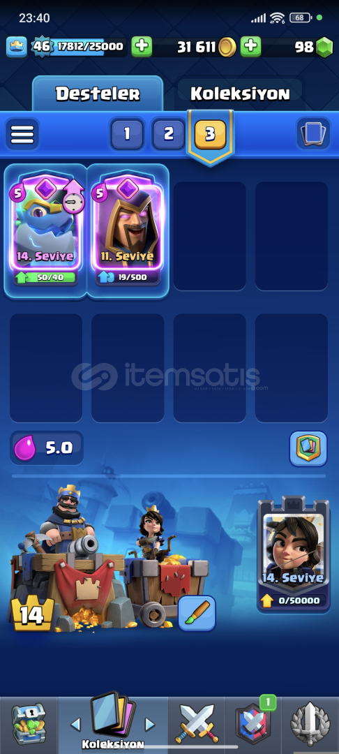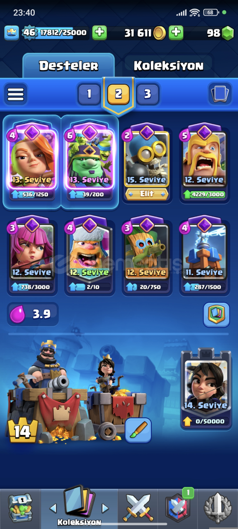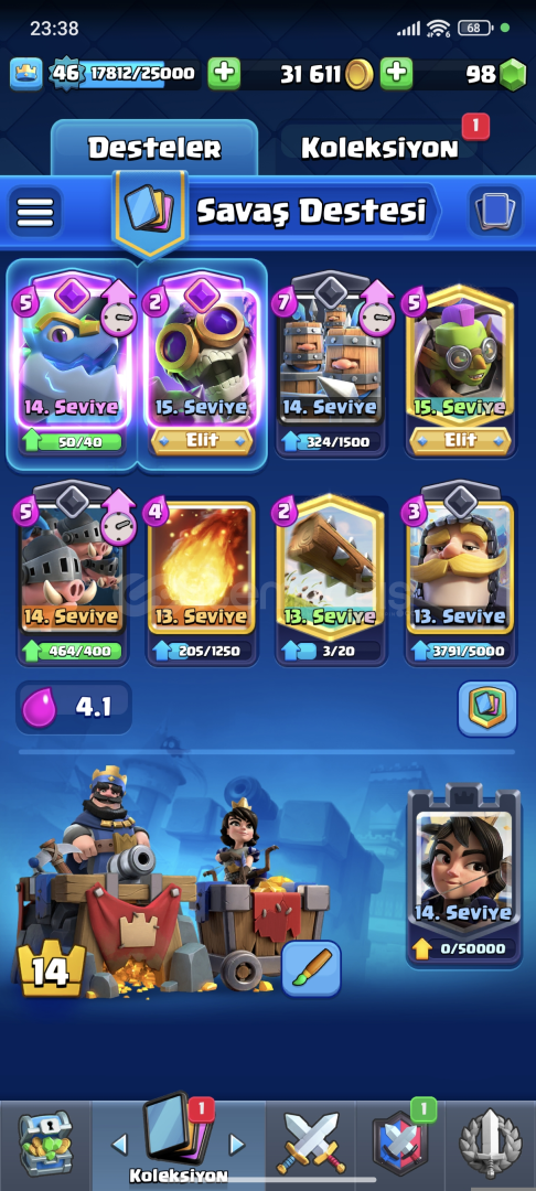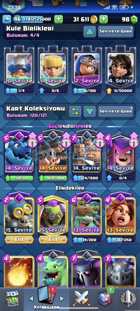 ⚡8730 kupa 46 seviye 10 evrim 2elit kart⚡