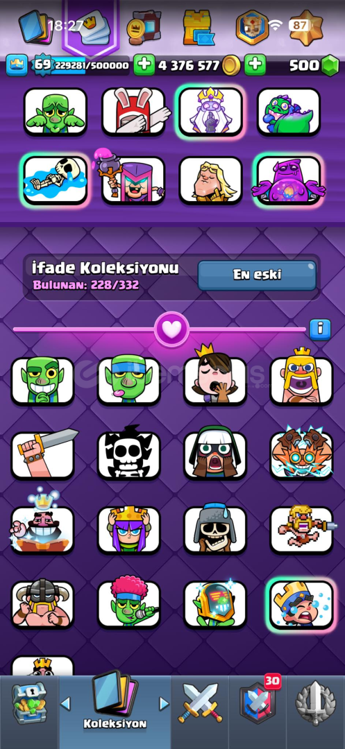 69 level88 elit kart 34 evrim 228 adet emoji.30 adet kule görünümü157 flama, 170 çerçeve.
