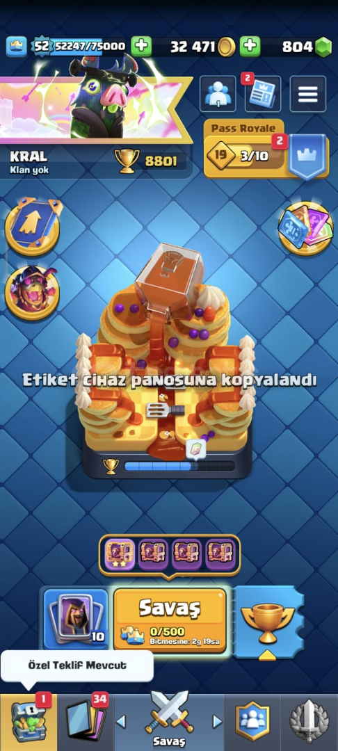 Otomatik teslimattır aktif olmasamda alabilirsiniz!Eposta:şifre formatında ve hesabı nasıl üzerinize alacağınızın hakkında bütün bilgiler satın alınca otomatik iletilecek!Hesaba detaylıca bakmak için:https://royaleapi.com/player/9RGJ9RP8LHesaplar asla geri çekilmez!Hesap koruması aktif değildir!Yeni güncelleme sebebiyle sezon geçişlerinde CLASH ROYALE HESAPLARINDA kupa kayb...