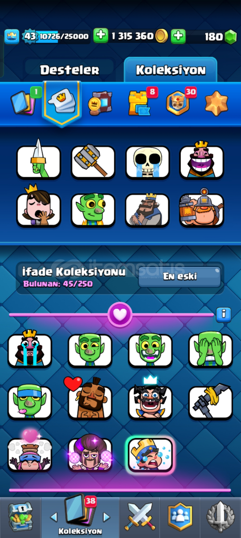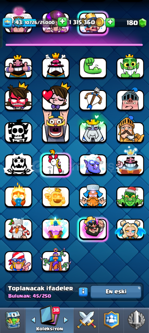 bombacı,şövalye,okçular,dart goblini,havaii fişekçi,tesla,büyücü,elektro ejder evrimi mevcut. İfadeler görseldeki gibidir.9 yıllık hesaptır.