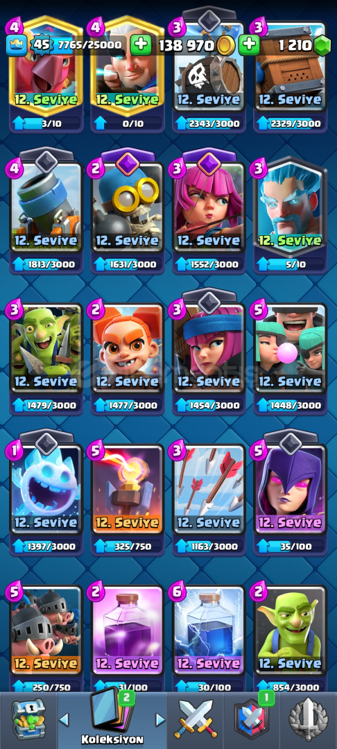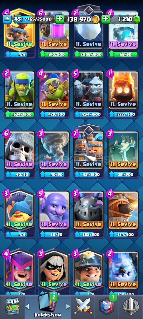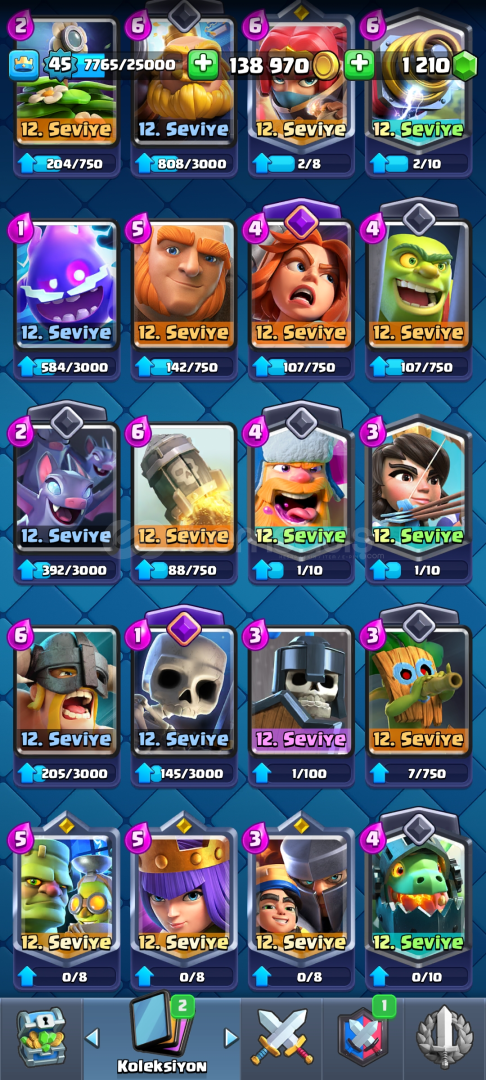 8900 KUPA 45 SEVİYE 10 EVRİM 119 KART