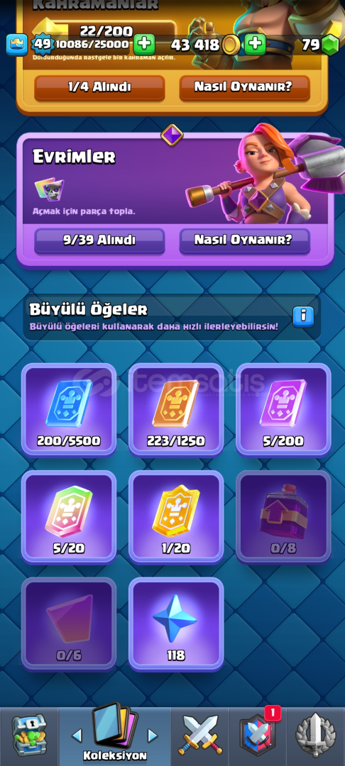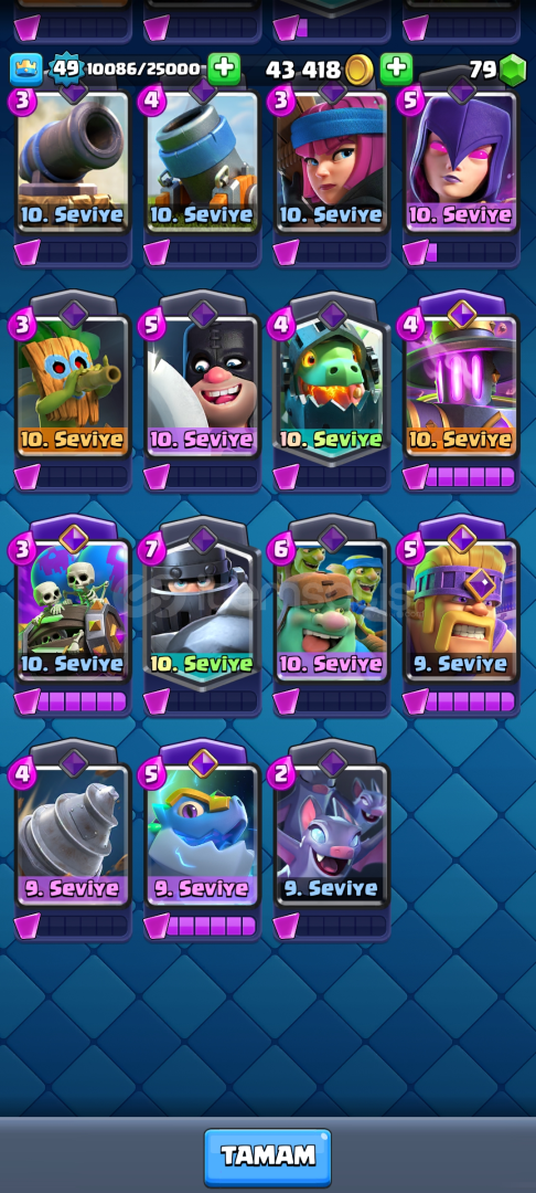 ANA KULE VE YAN KULELER 14 SEVİYEHESAP SEVİYESİ 498500 KUPA KAHRAMAN ŞÖVALYE 16.SEVİYE MAKS32 EMOJİ4 KULE TİP&...