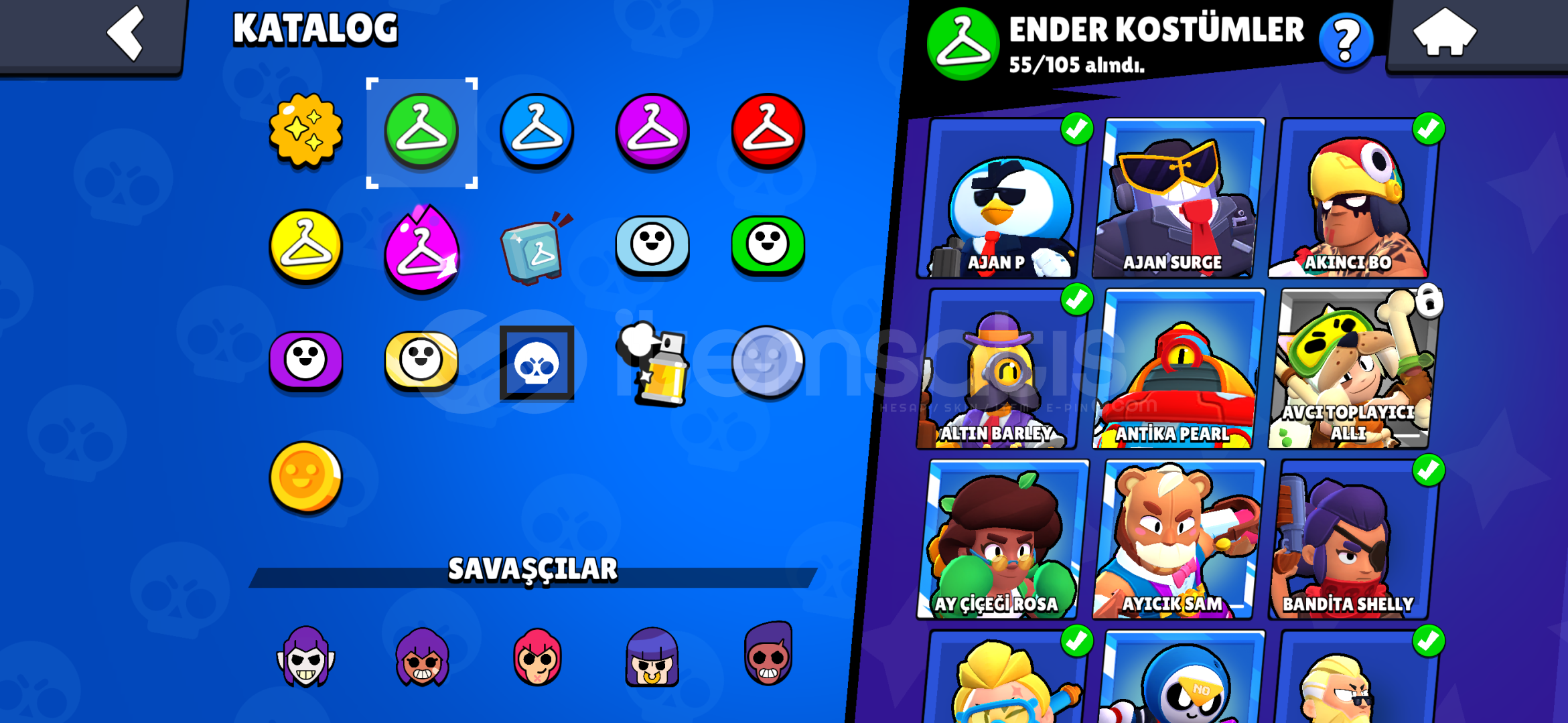 BS HESABI 36K 42 DESTANSI SKİN 69 SÜPER ENDER SKİN 55 ENDER SKİN
