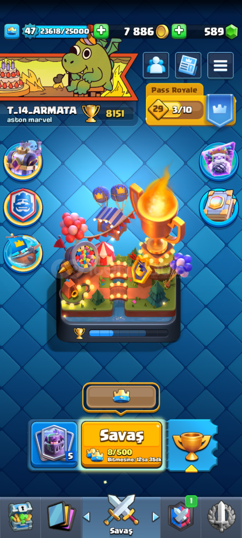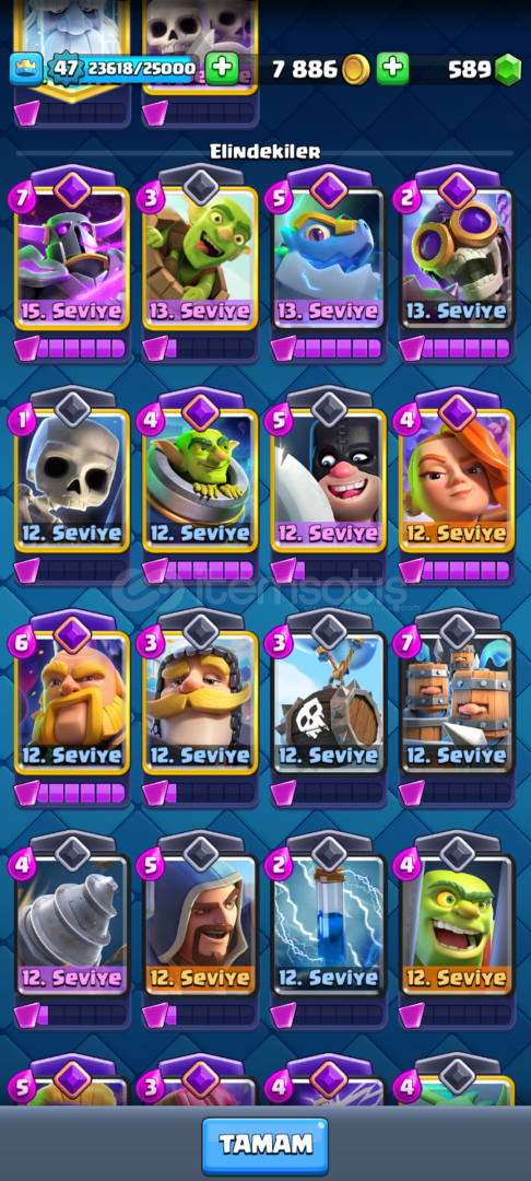 8k kupa cr hesabı ve 4 supercell oyunu bulunan bir supercell id hesabıdır. Sabah 08.00 ile 14.45 arası aktif degilim. Cr hesabı 8k kupa ve içinde 9 evrim var. Elit kart sayısı ve altını az. 3 tane kullanılmamış evrim parçası var. Fiyat son degildir.