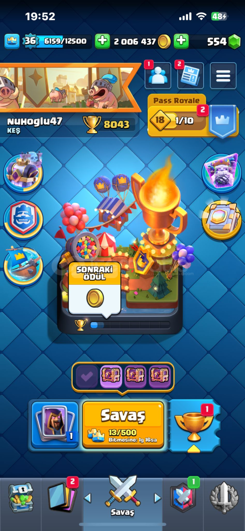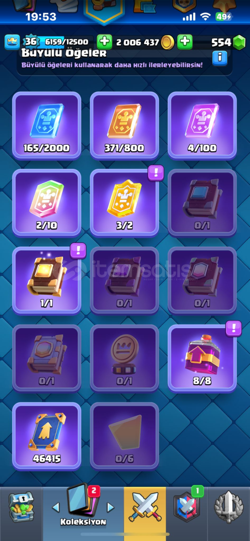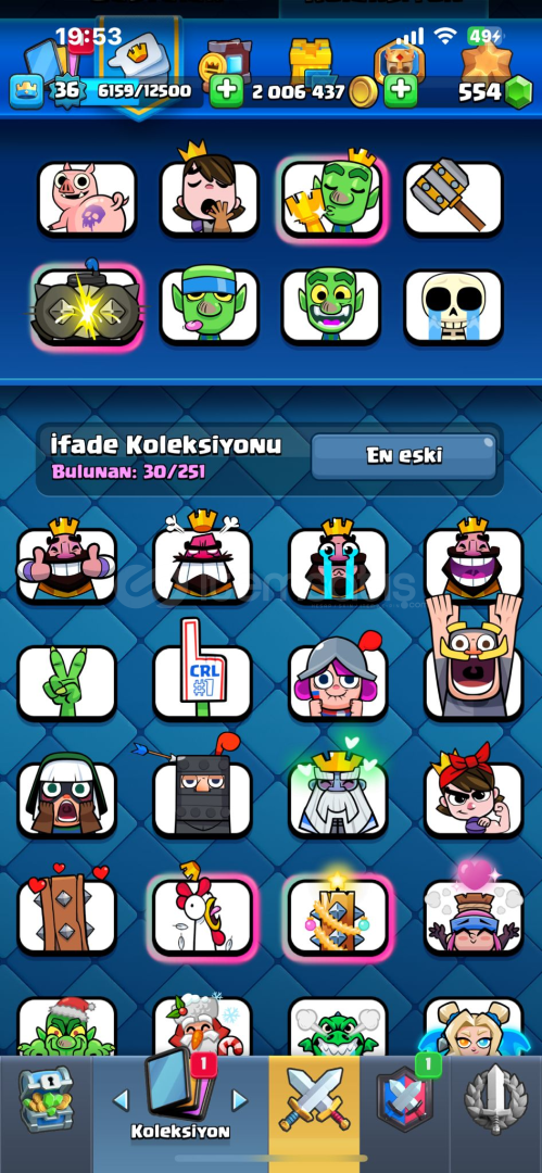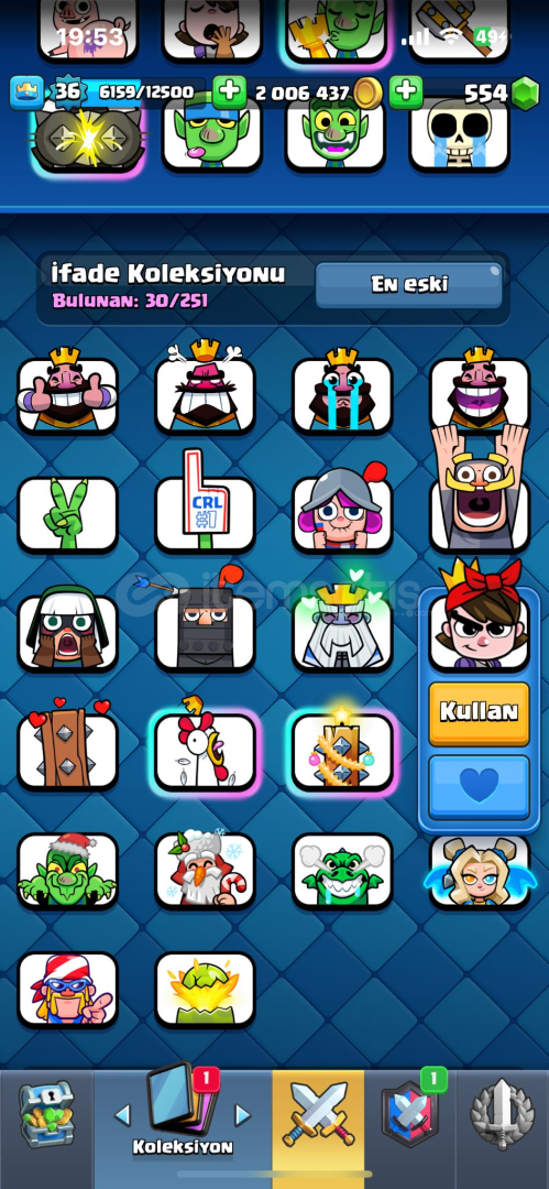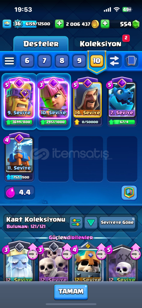 Hesap Bilgileri Şu Şekildedir:Hesap 8000 KupadadırHesapta Toplam 121 Kart VardırHesapta 5 Evrim Vardır Sırasıyla:BüyücüOkçularElektro EjderTeslaBarbarlarHesap 36 SeviyedirHesapta Fazlasıyla Toksik Emoji VardırHesap Koruması Yoktur.Pazarlık Usülüne Göre Yapılır.Otomatik Teslimattır Aktif Olmasam Bile Alabilirsiniz.