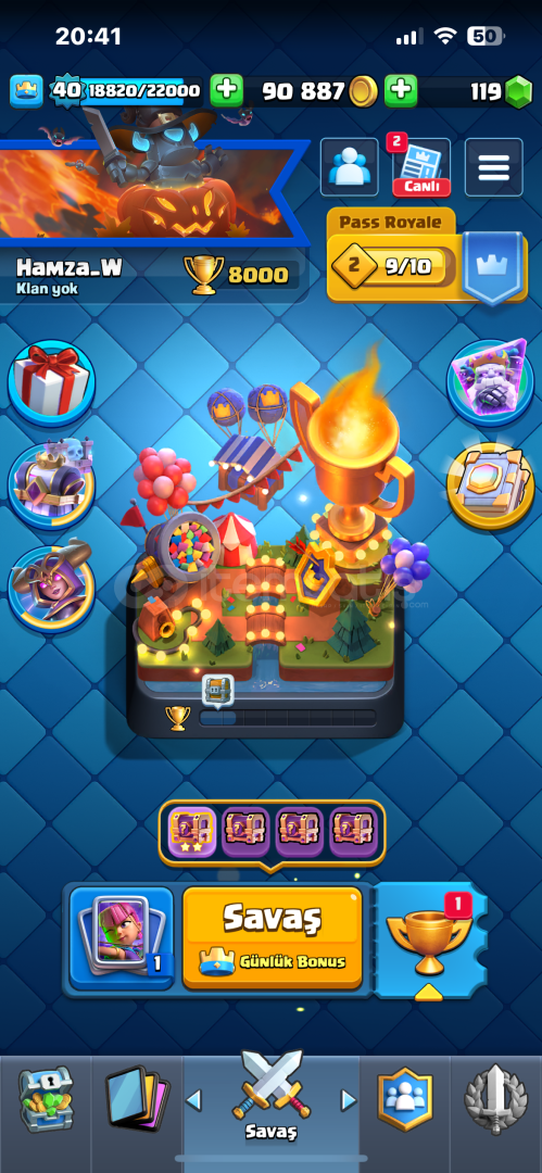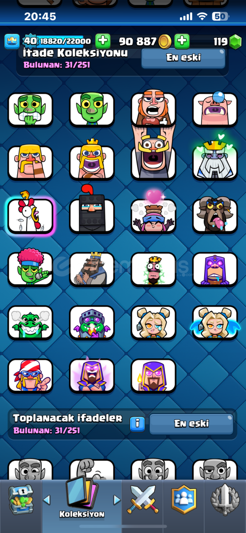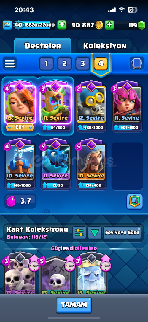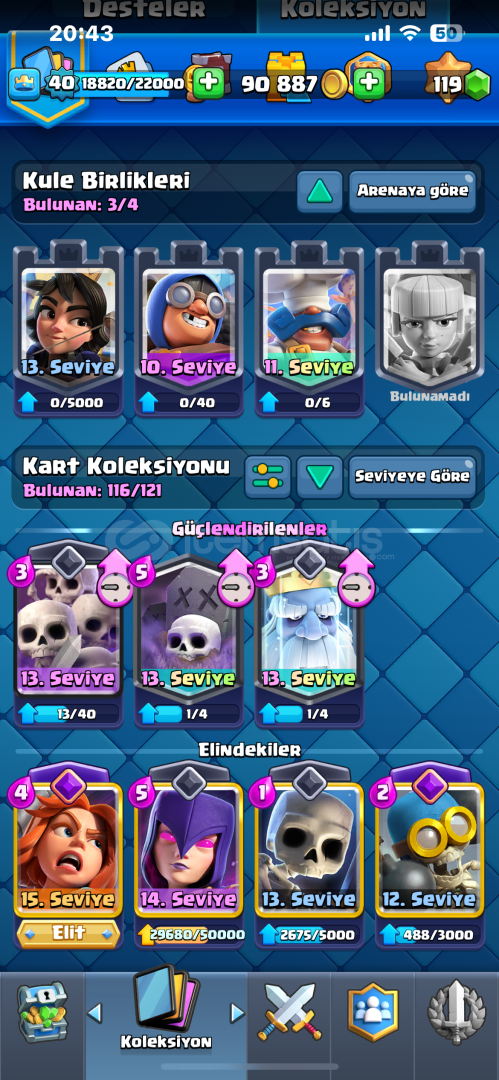 Hesap Bilgileri Şu Şekildedir:Hesap 8000 KupadadırHesapta Toplam 116Kart VardırHesapta 7 Evrim Vardır Sırasıyla:BüyücüOkçularElektro EjderTeslaValkürDart GobliniBombacıHesap 40 SeviyedirHesapta Fazlasıyla Toksik Emoji VardırHesap Koruması Yoktur.Pazarlık Usülüne Göre Yapılır.Otomatik Teslimattır Aktif Olmasam Bile Alabilirsiniz.