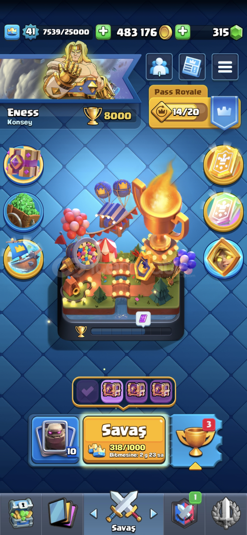 Hesap 41 Seviye ve 8k KUPA 53 Tane Emoji 6 Tane Evrim Bulunmakta Küçük Prens Hariç Tüm Kartlar Mevcut Detaylar İ&cce...