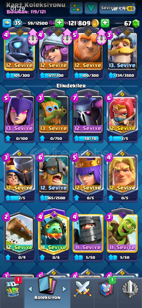 Hesap kupa ve kart sayısı yönünden full paket8k KUPA *-* & *-* 119/121 KART SAYISI İster mail değiştir İster Mail ile birlikte Hesap yanında (8BB) olan COC hesabı HEDİYETek sorun hesap kendi emeğim çok aktif olmadığım için evrim sayısı ve leveli düşük İstediğiniz Her Soruyu Dm Yoluyla İletebilirsiniz Pazarlık Adettendir.İyi Alışverişler Dileriz...