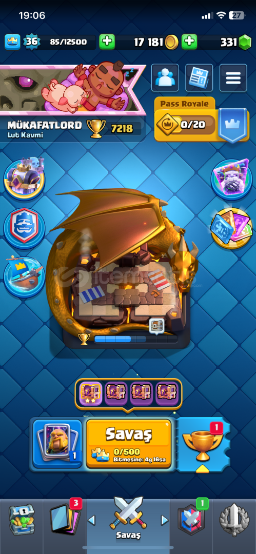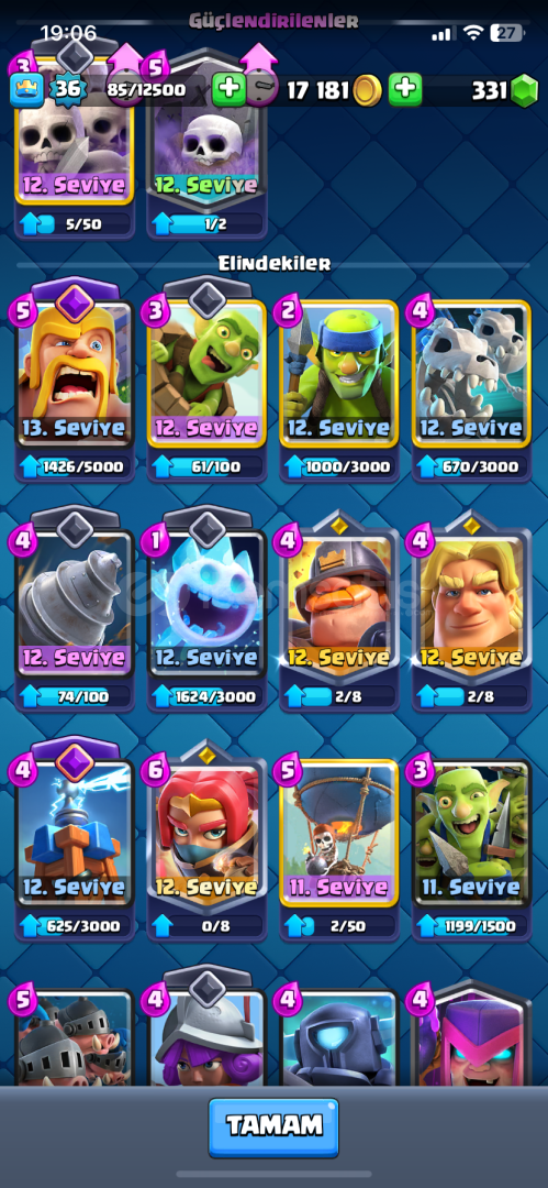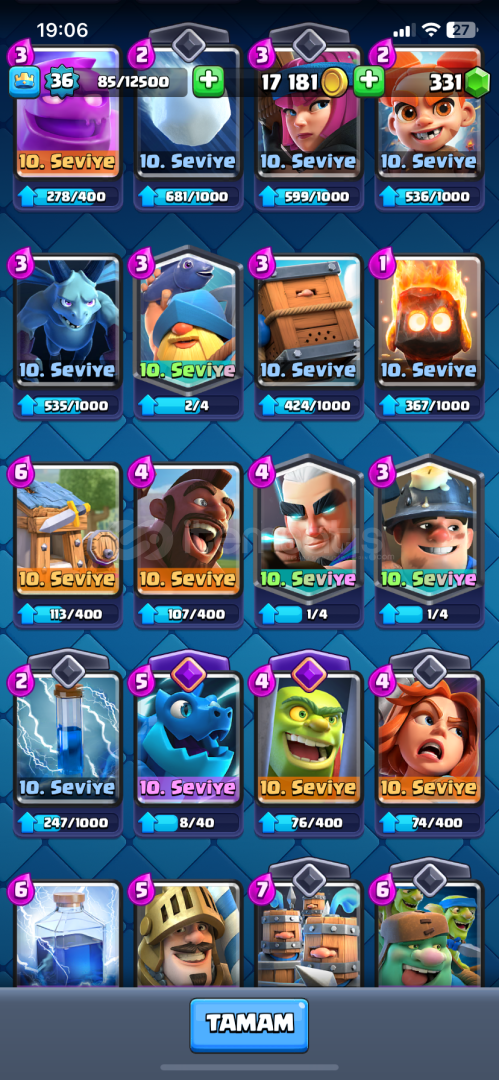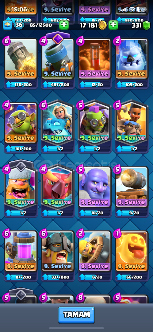 Kullanmadığım İçin Satıyorum Hesapta 9 Evrim bulunmaktadır Kraliyet Devi 14 seviye evrimlidir.