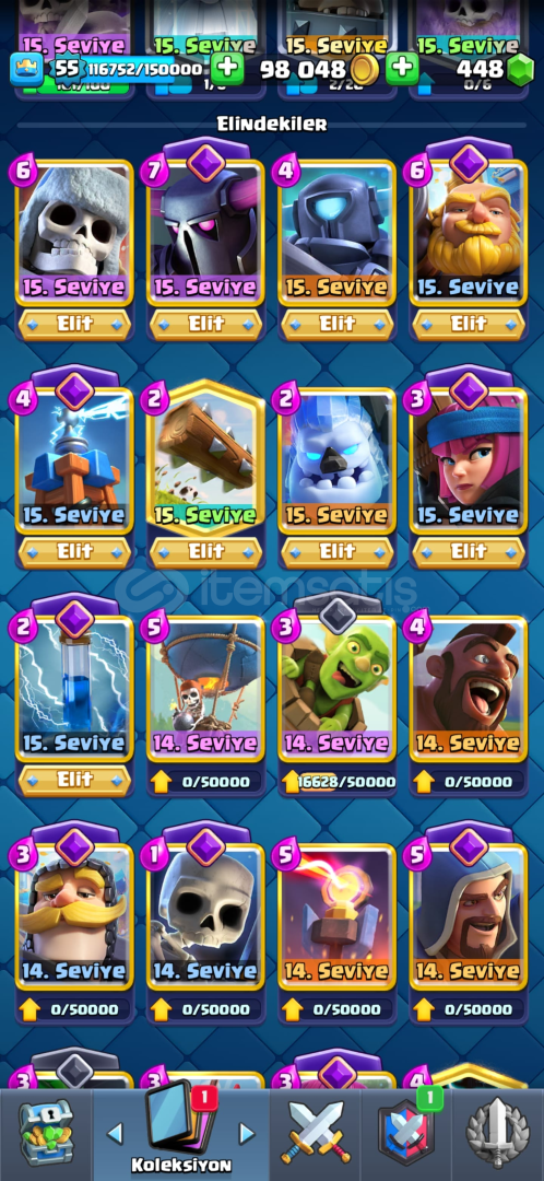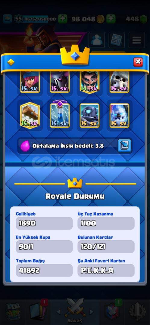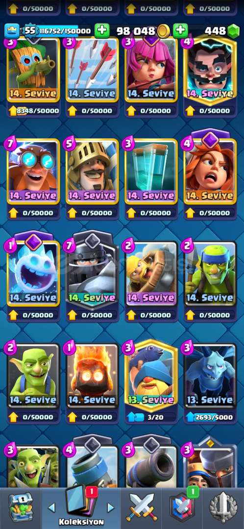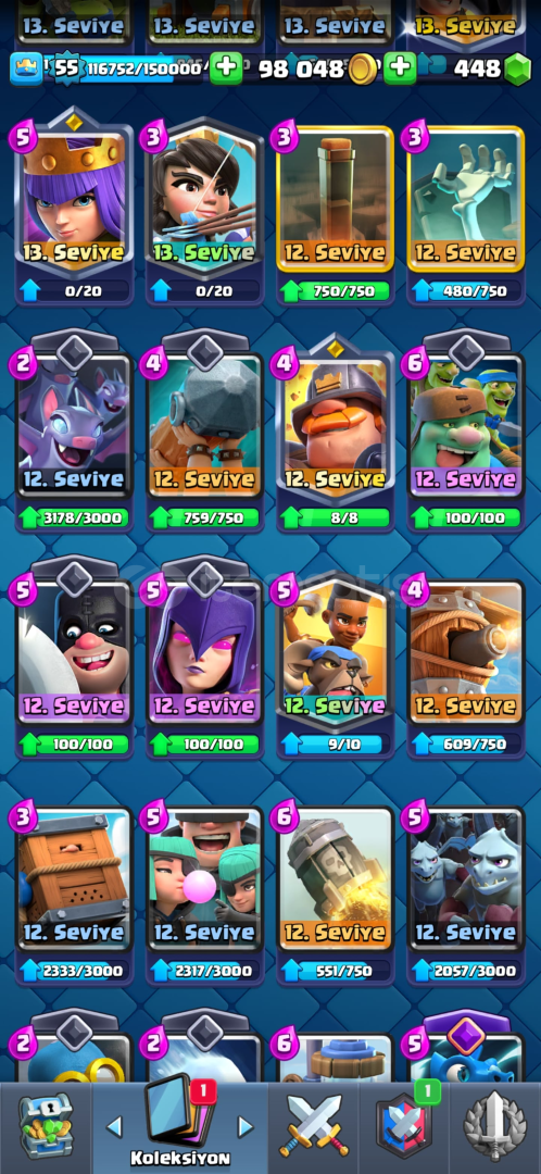 9 yıllık, sorunsuz Clash Royale hesabıHesap tertemizdir, bugüne kadar hiçbir problem yaşanmadı. Üniversite ve yaş nedeniyle artık oynamadığım için satıyorum.Tüm kartlar mevcuttur.Ender Kartlar Kitabı, 1 güçlendirme iksiri, yaklaşık 5 adet Şampiyon Joker Kartı ve 3000 civarında sıradan joker kart bulunuyor.Hesaba bağlı diğer Supercell oyunları da m...