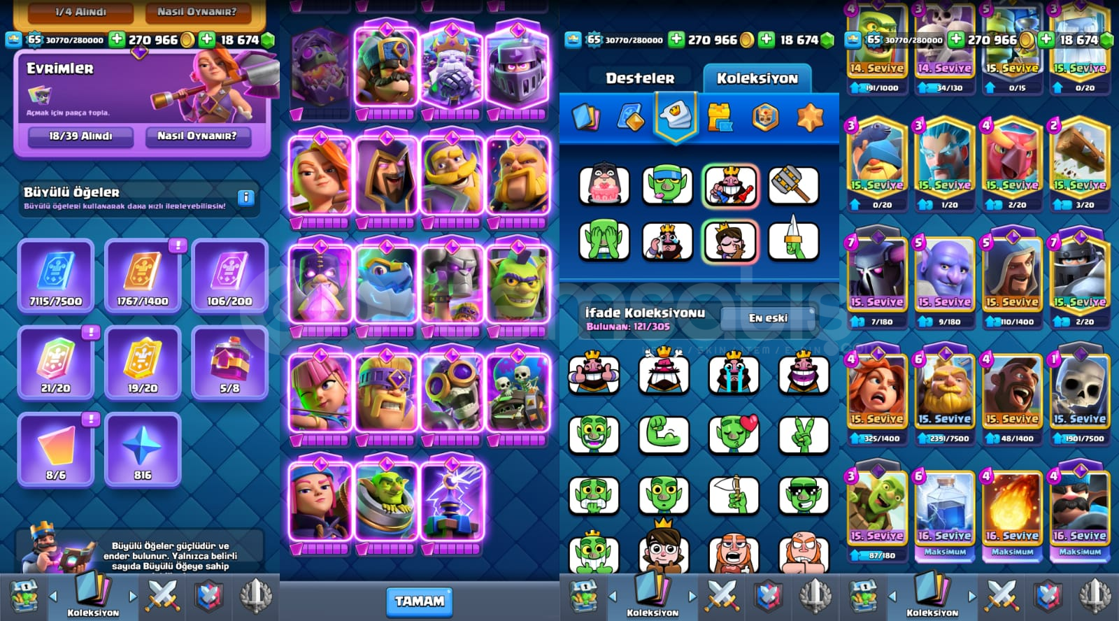 oynandı başarı rozeti var.65 seviye.Nihai şampiyon olmuştur hesap.121 tane emoji var .