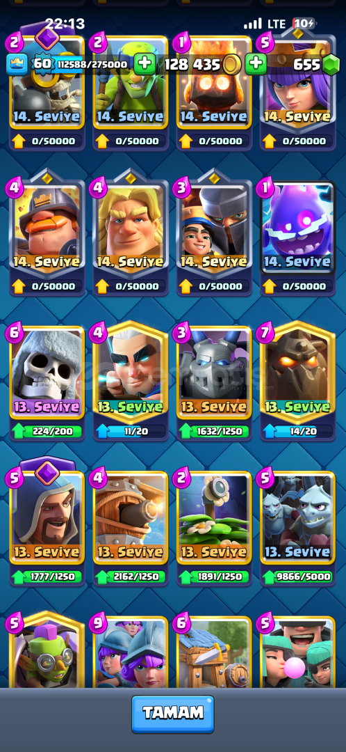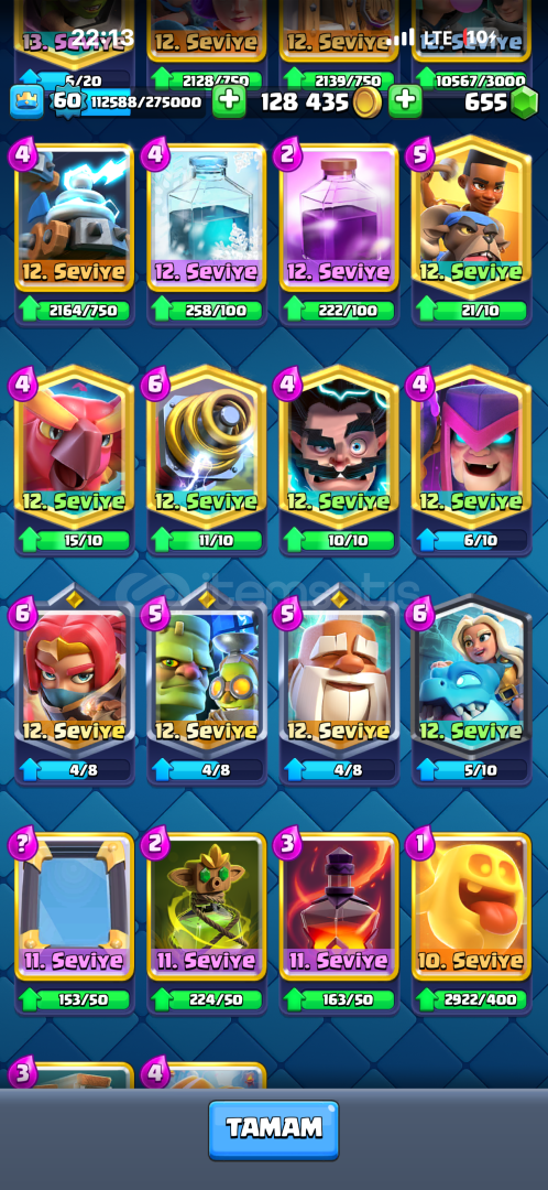 Hesap şahsıma aittir tüm kartlar max seviyedir sadece yükseltmeleri yapılacak alıcısına hayırlı olsun.