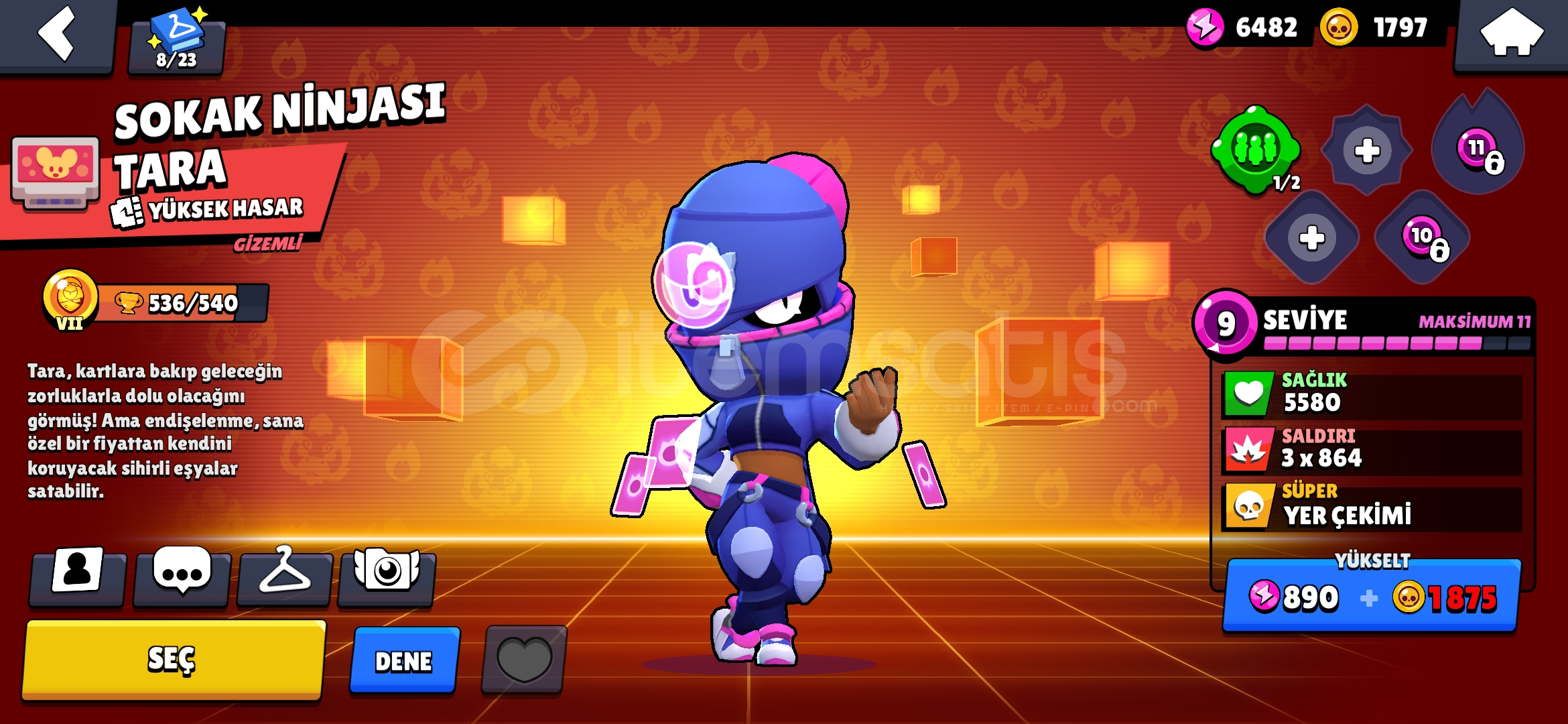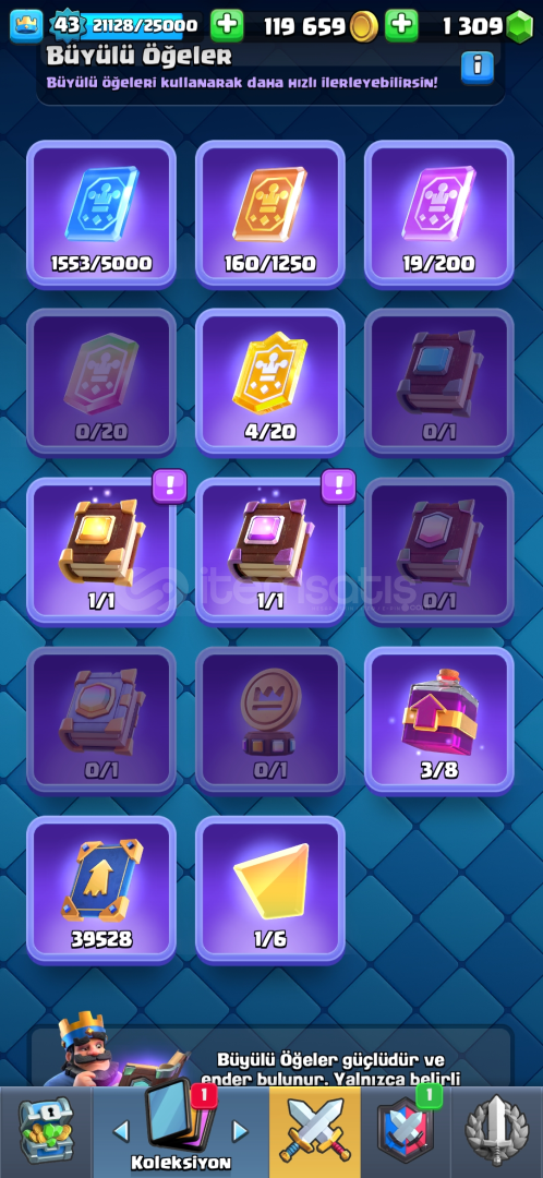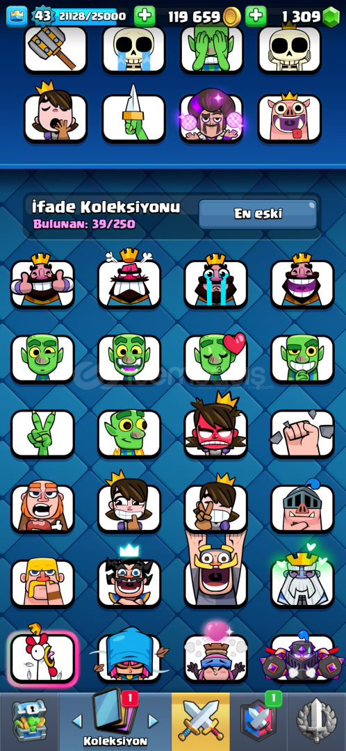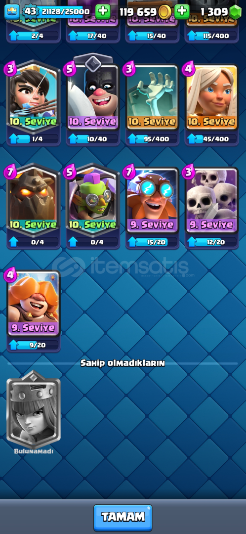 -CLASH ROYALE:Clash Royale 44 SeviyedirHesapta Aktif Olarak 1.309 Taş Vardır9 Evrim Vardır (2 Adet Kartın Evrimi 6/3 dür)36.000 Adet Seviye Coini Vardır120 Adet Kart Vardır40.000 Adet Elit Seviye Yükseltme Jetonu VardırValkür Elit Seviye dir4 Kule Görünümü Vardır40 Adet Emoji Vardır (Çogu Nadir Emojiler)-BRAWL STARS:Hesap 30K dır1 Kez Brawl Pass AçılmıştırNinja Tara Gibi Nadir K...