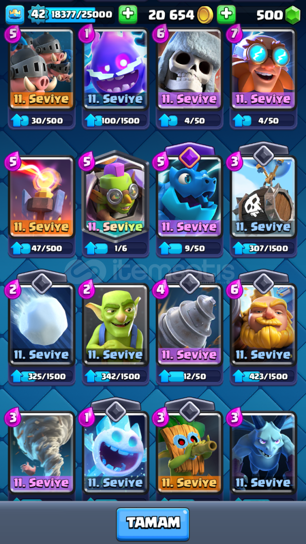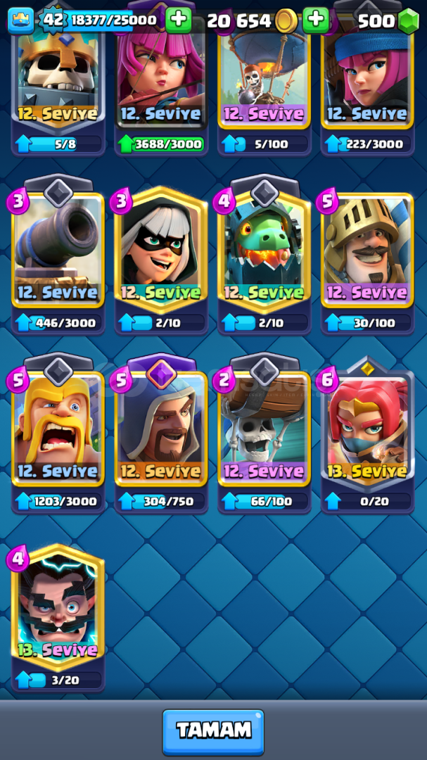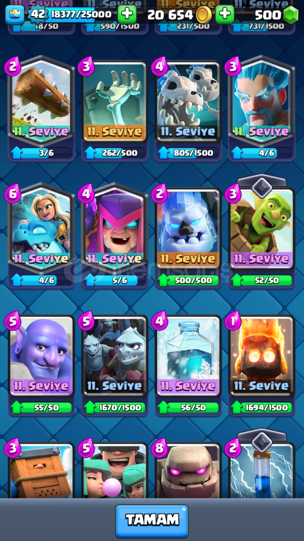 Goblinstein ve okçu kraliçe dışında tüm kartlar vardır 5 Evrimlidir