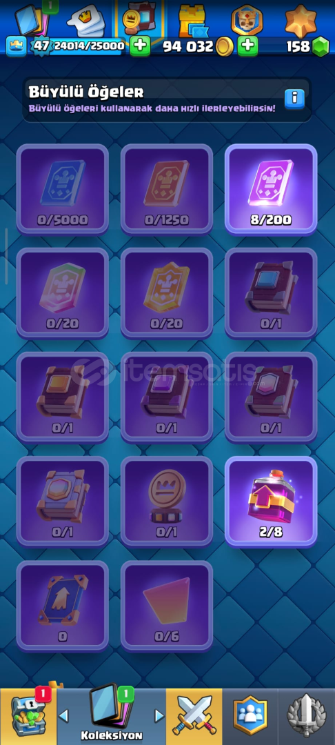 Otomatik teslimattır aktif olmasamda alabilirsiniz!Eposta:şifre formatında ve hesabı nasıl üzerinize alacağınızın hakkında bütün bilgiler satın alınca otomatik iletilecek!Hesaba detaylıca bakmak için:https://royaleapi.com/player/8PYGYYVJHesaplar asla geri çekilmez!Hesap koruması aktif değildir!Yeni güncelleme sebebiyle sezon geçişlerinde CLASH ROYALE HESAPLARINDA kupa kayb...