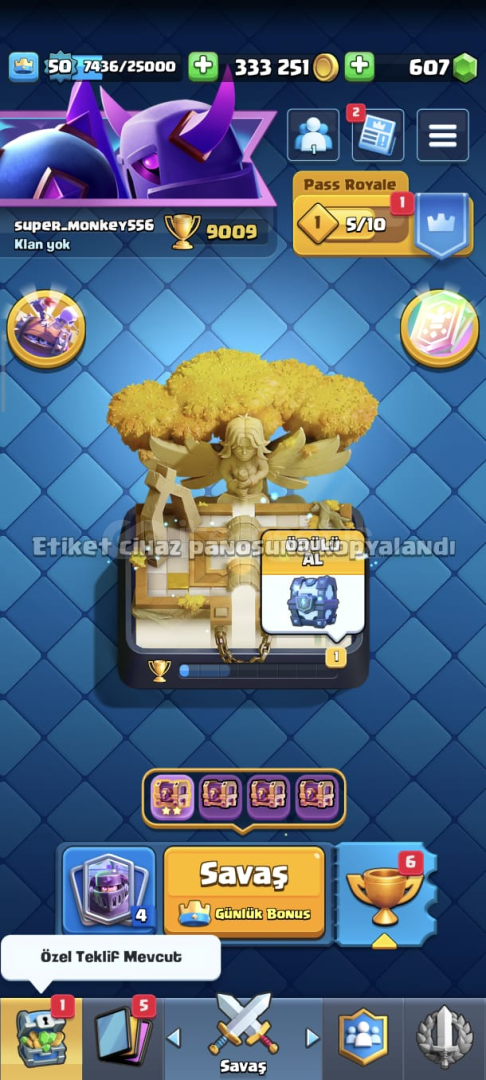 Yeni güncelleme sebebiyle sezon geçişlerinde CLASH ROYALE HESAPLARINDA kupa kaybı yaşanabiliyor bilginize.