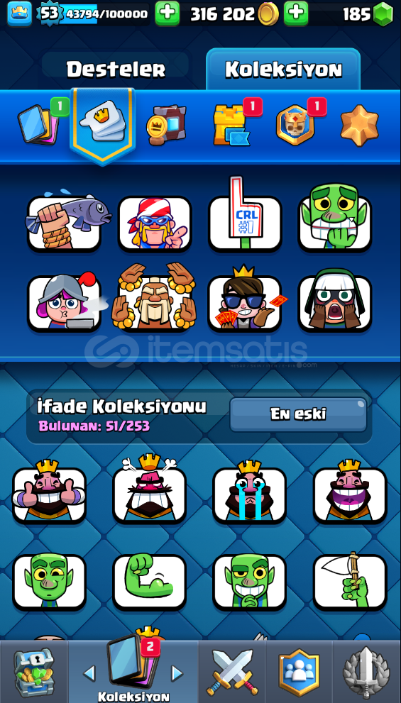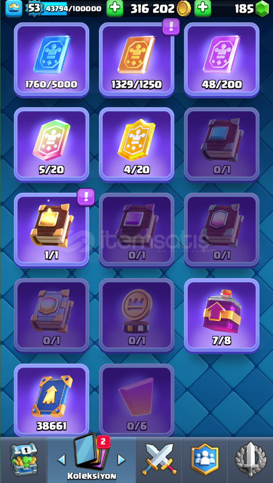 9000 KUPADIRDİĞER BU KUPADAKİ HESAPLARA GORE DAHA EVRİMLİ YÜKSEK LEVELLİDİR8 YILLIK BİR HESAPNADİR EMOJİLER BULUNUYORŞUAN AKTİF OLARAK KULLANDIĞI DESTE ÇOK GÜÇLÜCLASH ROYALE HESABINI İNCELEMEK İÇİNHESAP LEVEL 53 LEVEL LEVEL319K ALTIN  185 ELMAS BULUNMAKTAMail ile teslim edilecektirSATIN ALMADAN VİDEO KAYDINA BAŞLANMIŞ OLMALIOTOMATİK TESLİMATT...