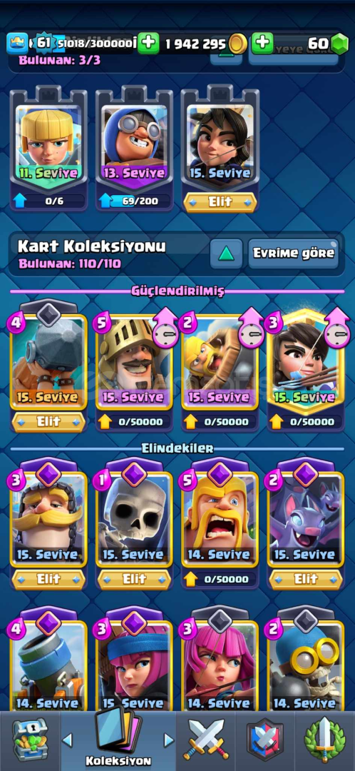 DOP DOLU ŞAHANE MAX CR HESABI ! BU FİYATA KAÇMAZ !!!-61 LV. 9000 KUPA NİHAİ HESAP.-TÜM KARTLAR MAX 14-26 ELİT KART-NEREDEYSE TÜM EVRİMLER AÇIKYOUTUBE İÇERİK ÜRET, RANK KAS, E-SPORCU OL! HERŞEY YAPILIR BU HESAPLA!!