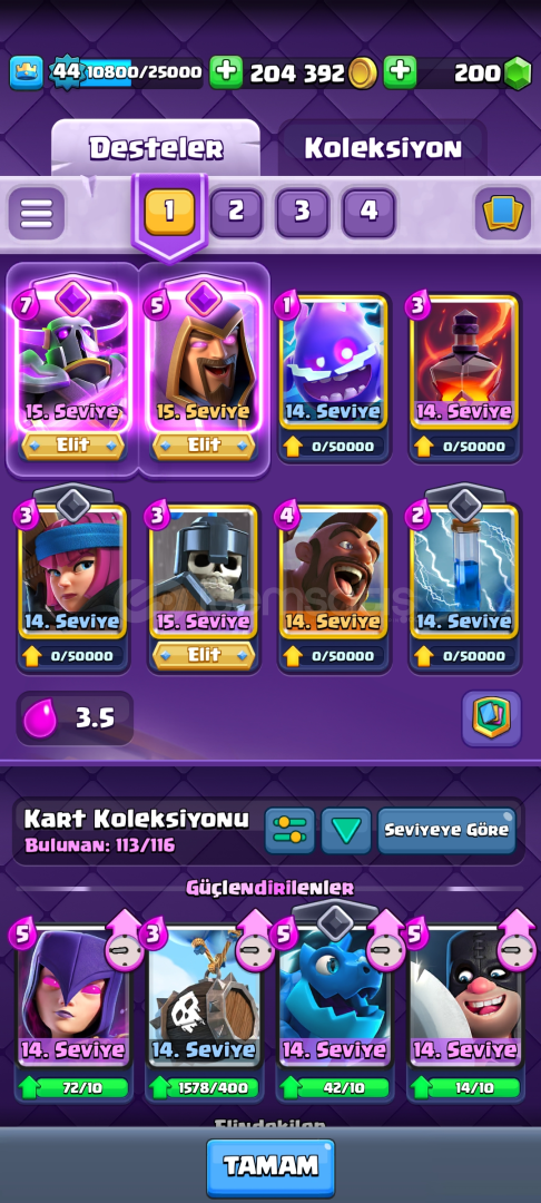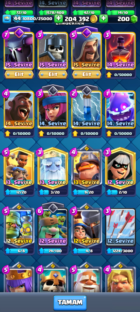 • Hesapta 3 Tane elit kart vardır ve 55.000 elit joker vardır .
