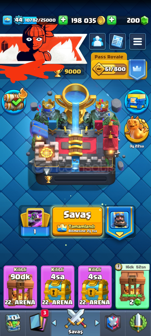 • Hesapta 3 Tane elit kart vardır ve 55.000 elit joker vardır . • 5 kartı 14 leveldir. • Evrimlerin 4 tanesi açık ve çoğu evrimin evrim parçacığı vardır .• Kitapların Kitabı ve 5 tane joker evrim parçacığı var .• Hesap 9000 Kupa ve En fazla Asıl şampiyonu görmüştür. • 10kez klasik mücadele bitirilmiştir.