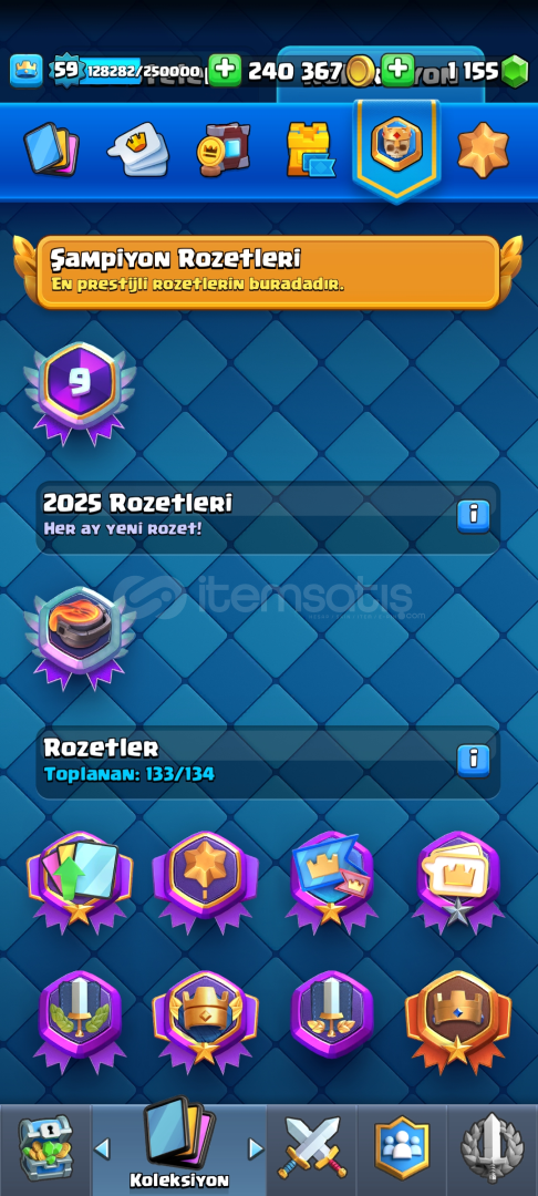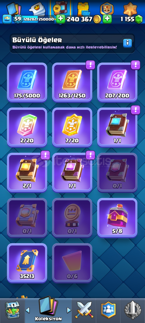 HESAP HAKKINDA DETAYLI BİLGİLER.... HESAP İÇERİĞİ...11000 KUPA -59LVL-831.270 KAREKTER YÜKSELTME, SARI YILDIZ -1.055 TAŞ-110 EMOJİ-19 KULE GÖRÜNÜMÜNOT/ HESABI KORUMA KAPALIDIR, SIFIR MAİL İLE TESLİM EDİLİCEKTİR... /İNDİRİM KONUŞULUR /SeriesShop