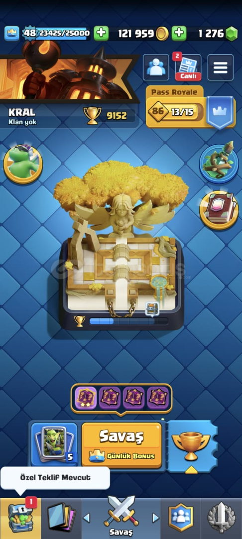 Otomatik teslimattır aktif olmasamda alabilirsiniz!Eposta:şifre formatında ve hesabı nasıl üzerinize alacağınızın hakkında bütün bilgiler satın alınca otomatik iletilecek!Hesaba detaylıca bakmak için:https://royaleapi.com/player/2CJJL9URJHesaplar asla geri çekilmez!Hesap koruması aktif değildir!Yeni güncelleme sebebiyle sezon geçişlerinde CLASH ROYALE HESAPLARINDA kupa kayb...