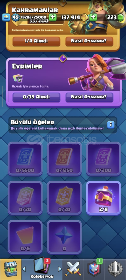 | 9100 KUPA | 49 SEVİYE | 1 HERO |