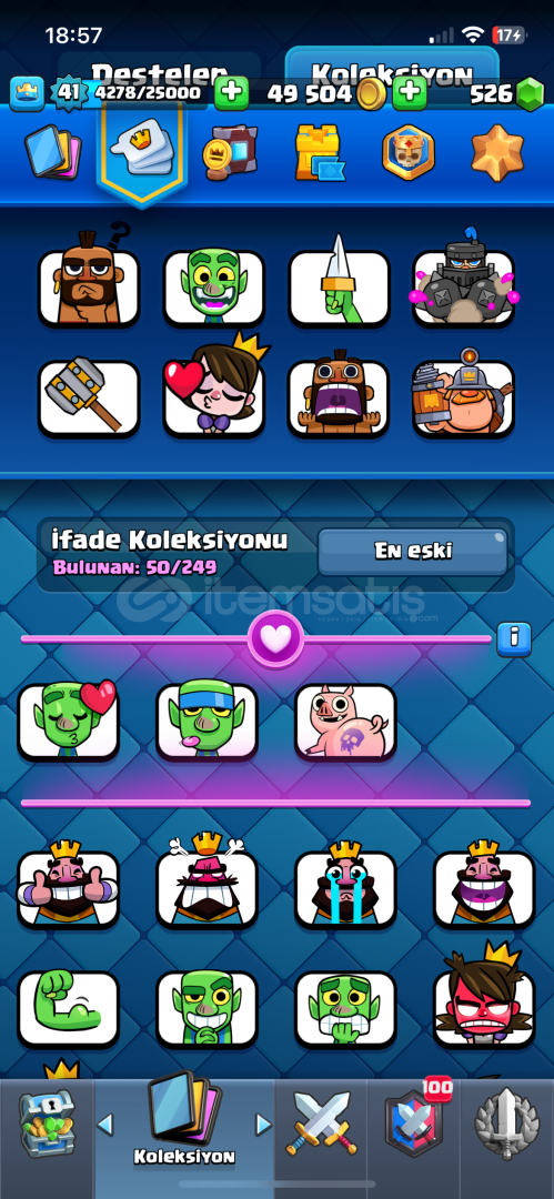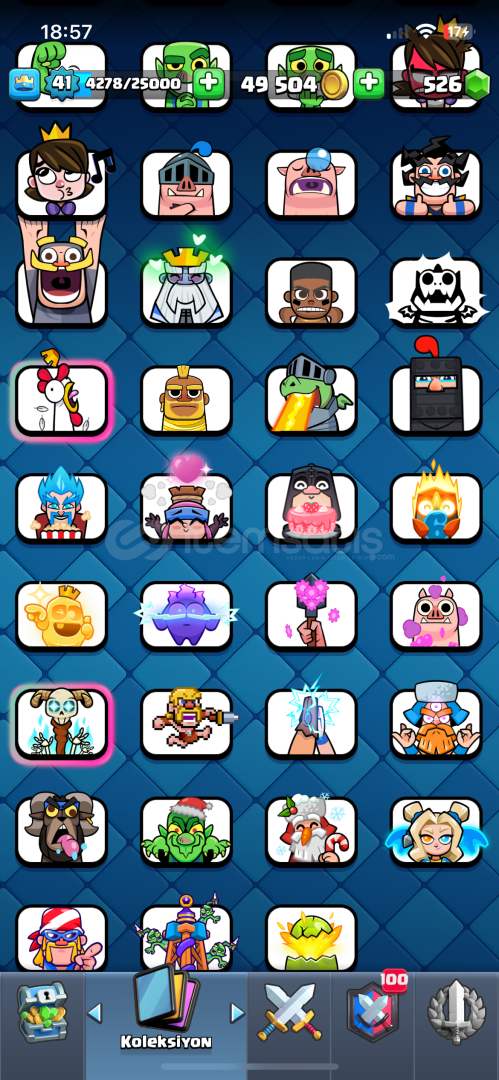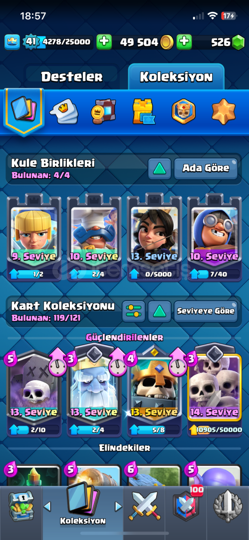 HESAP 5 YILLIK EMEK HESAPI EN AZ SEVİYELİ KAREKTER 11 119 tane karekter vardır hesapda 500 taş elmas bütün kule birimleri vardır 50 tane emoji tosic doludur.