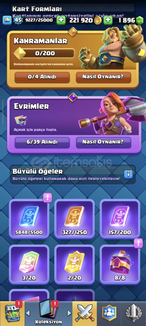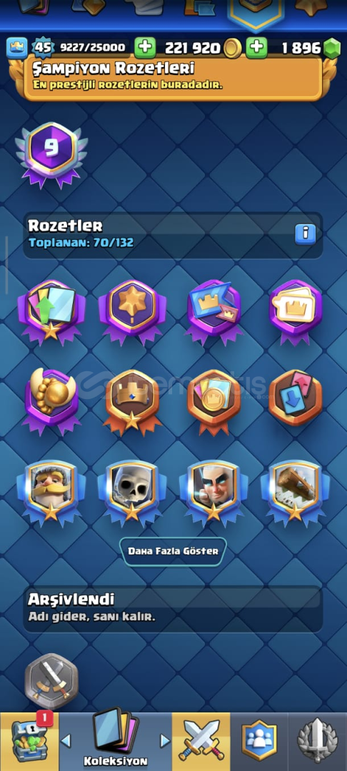 | 9200 KUPA | 45 SEVİYE | 6 EVRİM |