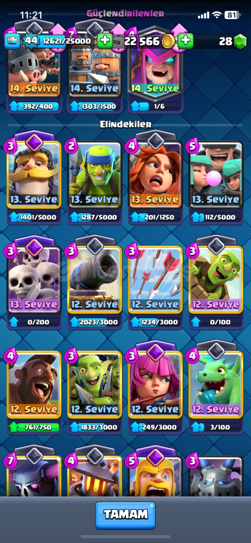 9200 Kupa Hesap 8 Evrim vardır Bi kac parçaya baska evrimlerde acılmaktadır Hesap 44 Seviyedir Aşçı Kule Birliğide 14 Seviyedir