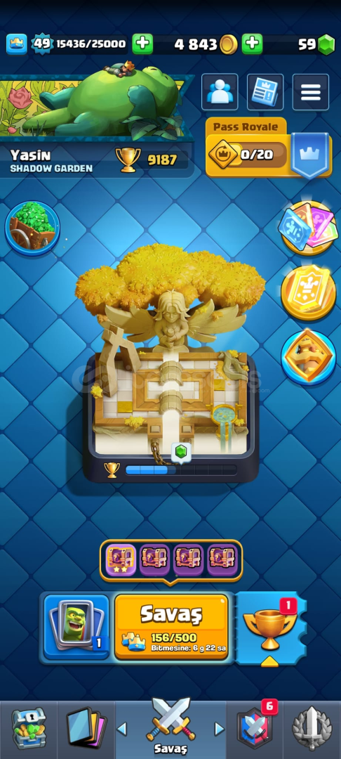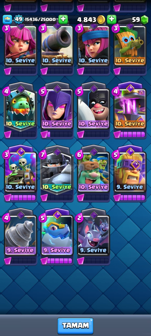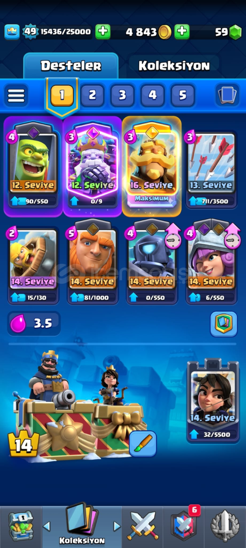 ANA KULE VE YAN KULELER 14 SEVİYEHESAP SEVİYESİ 499200 KUPA KAHRAMAN ŞÖVALYE 16.SEVİYE MAKS33 EMOJİ4 KULE TİPİ