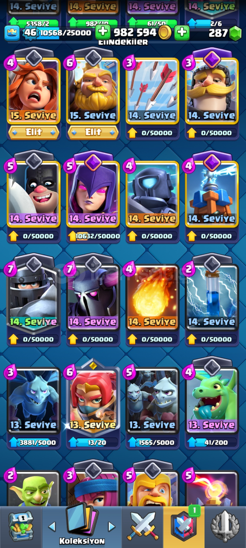İstediğiniz bir kartı 15 lvl basabilirsiniz