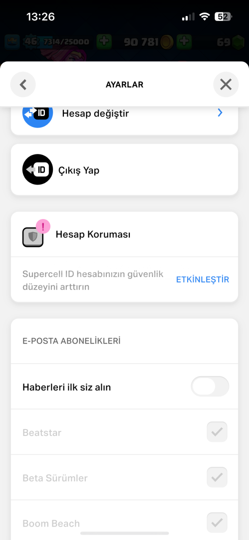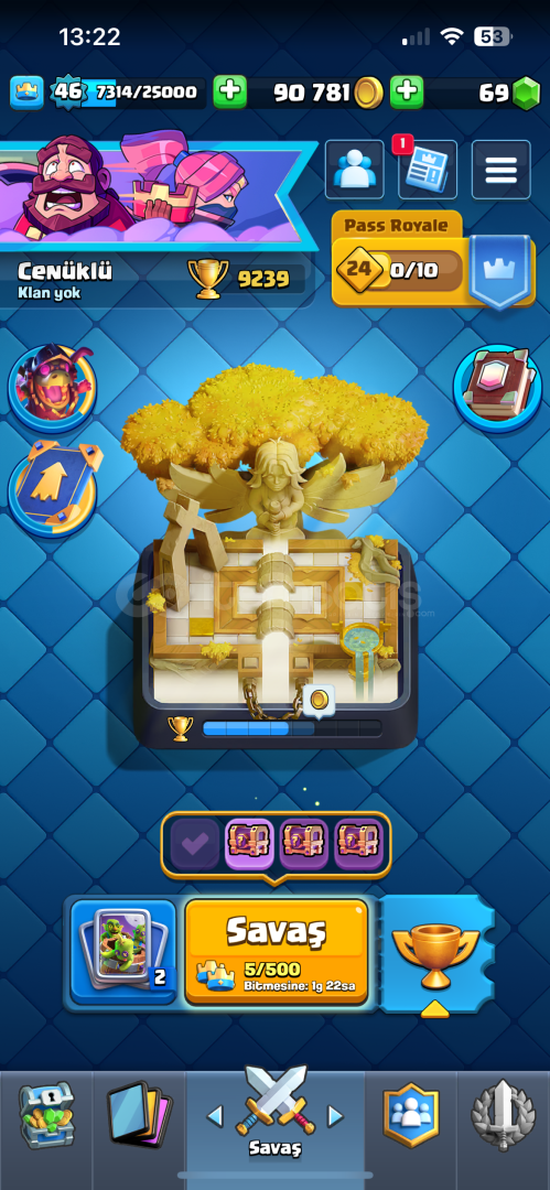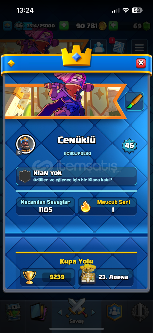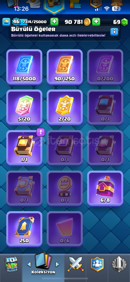 -Hesap 9.2K Kupada-Hesapta Toplam 7 Evrim Bulunuyor Bunlar;1.Valkür2.Barbarlar3.Elektro Ejderha4.Goblin Fıçısı5.Tesla6.Okçular7.Büyücü-Hesapta 3 Tane Elit Kart Var-Hesapla İlgili Neredeyse Herşeyi Koymaya Çalıştım Fotoğraflara Fakat Yinede Merak Ettiğiniz Bir Şey Olursa Yazabilirsiniz Yardımcı Olurum-Hesabın İlk Sahibiyim-Hesapta Numara Koruması Yok-Mail Değişimi ...
