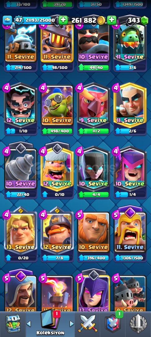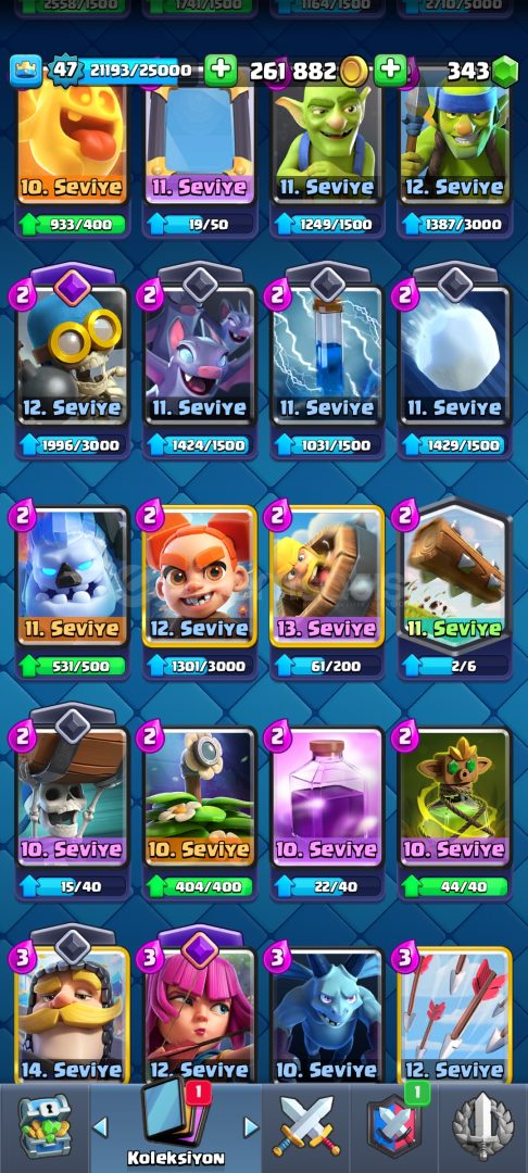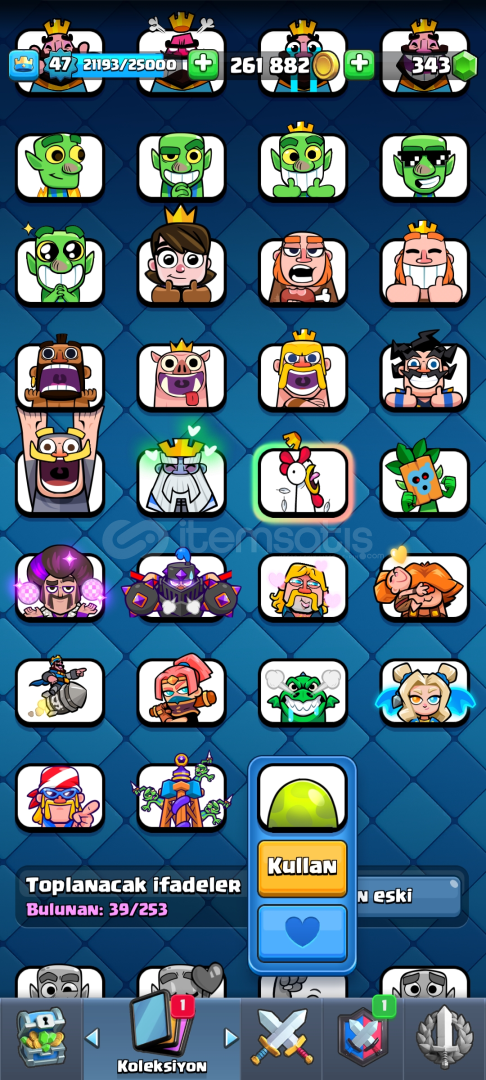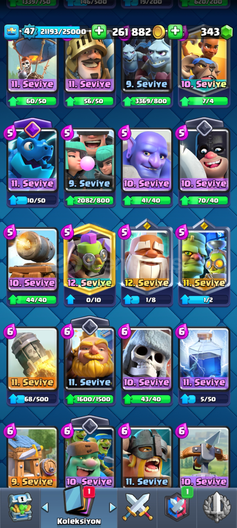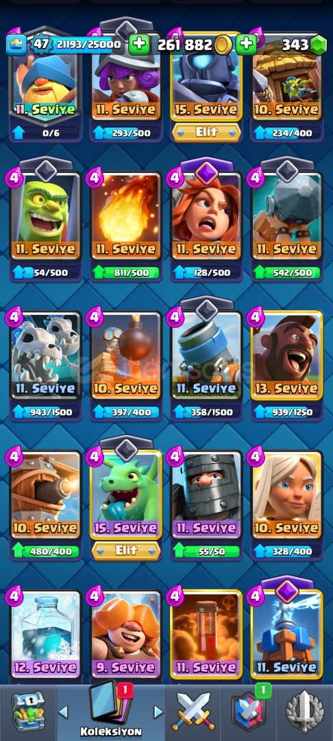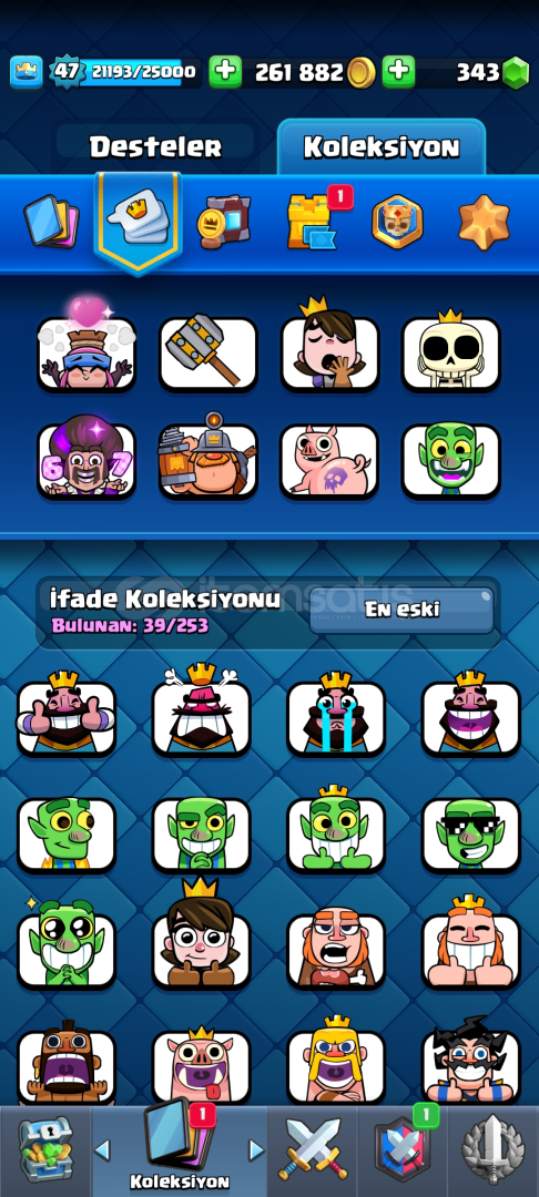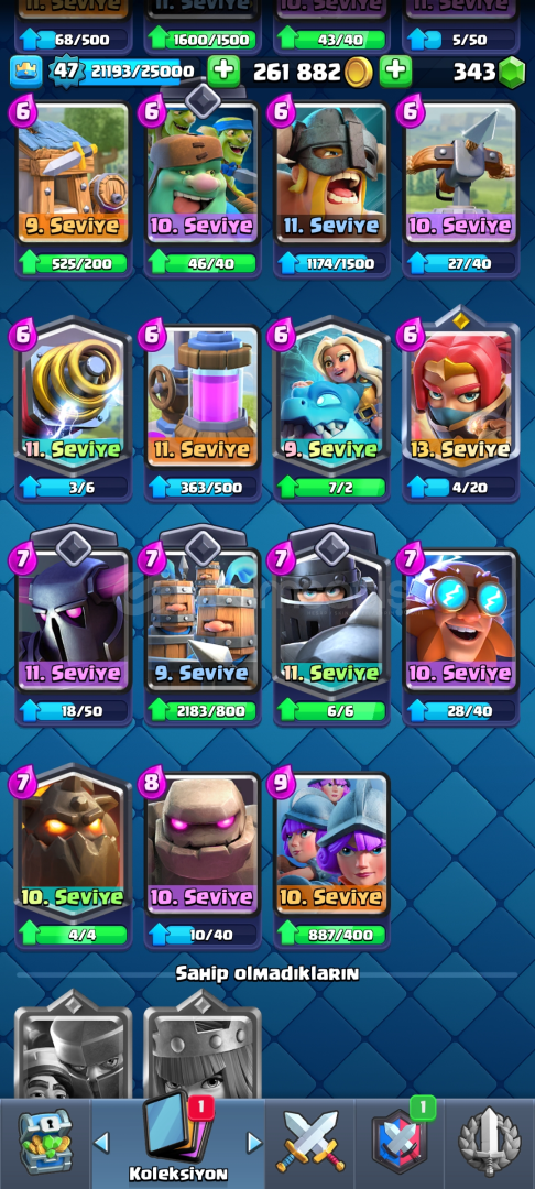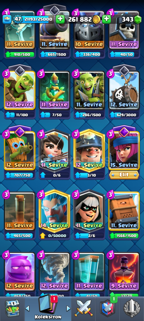 9342 kupa 118 kart 9 evrim bir süri kudurtucu emoji3 tane Max 4 tane 14 seviye kart 300 elmas var pazarlık mevcutdur