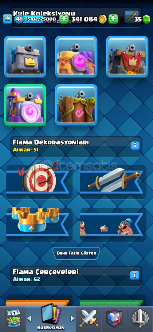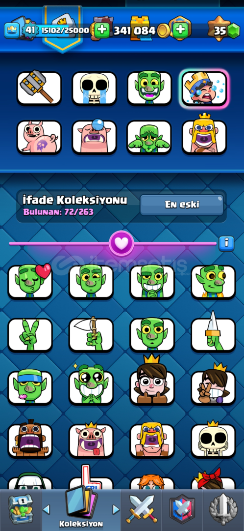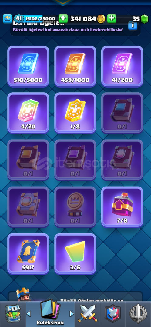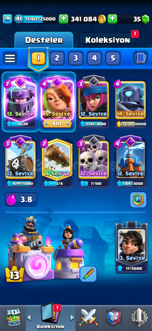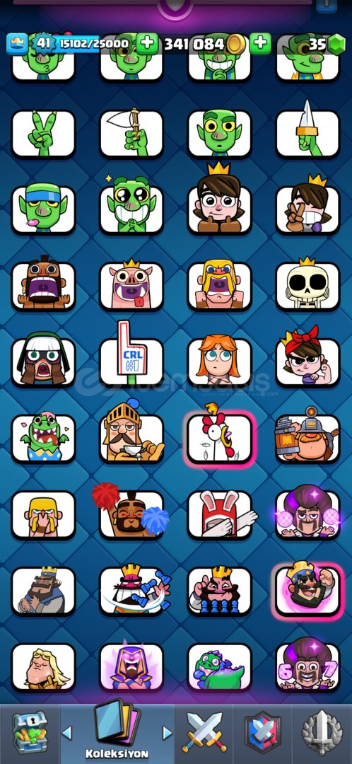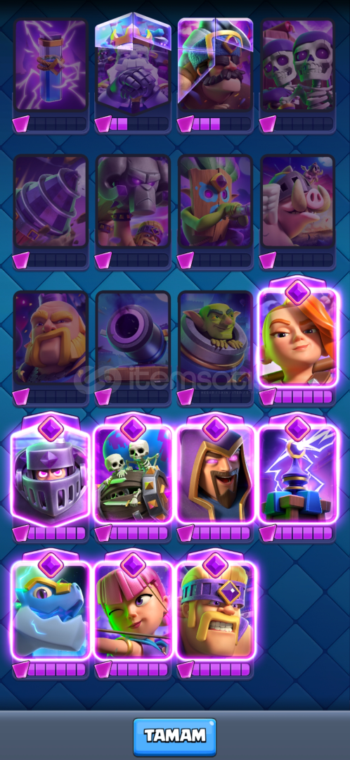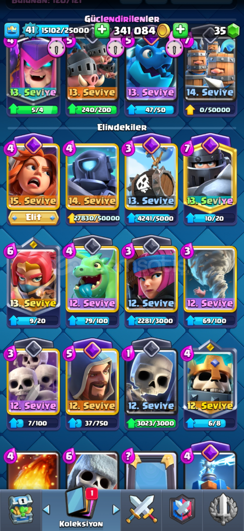 ● Hesabım 9300 civarlarında kupadadır.● Hesapta para ile alınan değerli emojiler vardır● 15 Seviye ve 14 seviya kartlar bulunmaktadır● evrim parçaları ve jetonlar.● 8 Tane açık evrim bulunmaktadır.● Sadece olmayan bir tane şampiyon var (okçu kraliçe ).● Detaylar ve sormak istediğiniz soru varsa Dm 'Den ulaşabilirsiniz.