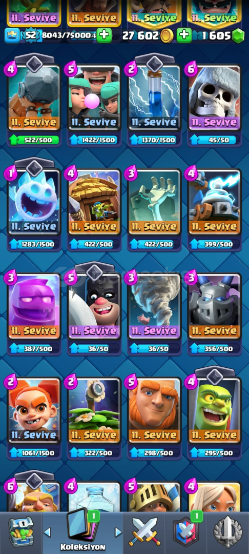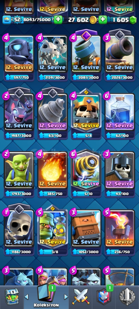 Hesapta herşey var 9350 kupa hesap 4 tane elit ve 11 tane evrim vardır. Normalde 10 tane fakat cadının açılmasına 1 parça kaldı o yüzden 11 tane diyorum. Öğrenciyim ve maddi sıkıntılar çekiyorum o sebepten acil satılık. Hesapta 1605 taş vardır. İsteyen ismini de değişebilir. Hesaptaki tüm karakterler açıktır en düşük seviye 10. ACİL PA...