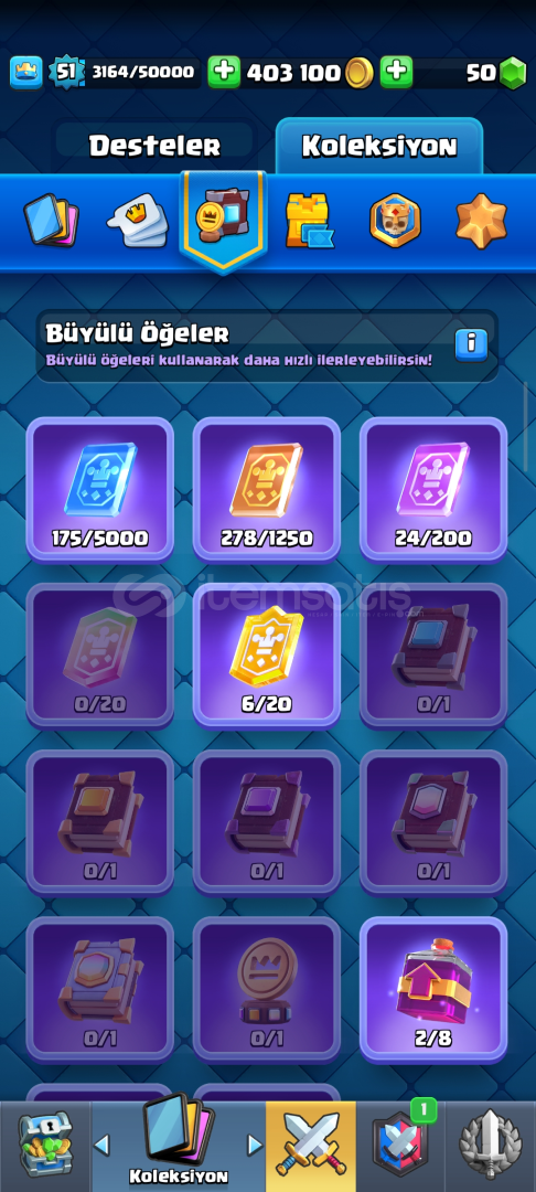 🏆 9500 Kupa • 120 Kart • 10 Evrim • 4 Elit — Full Gelişmiş Hesap 🏆