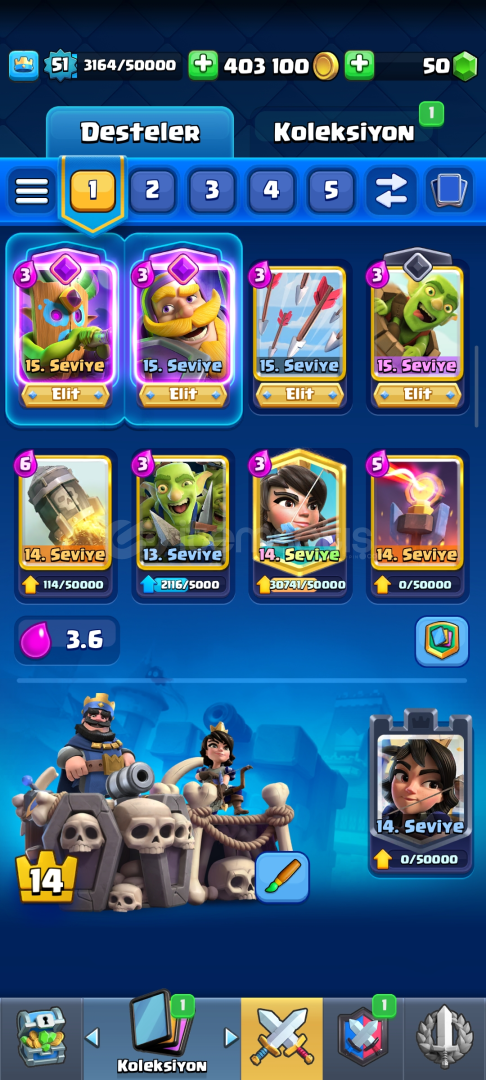 🏆 9500 Kupa • 120 Kart • 10 Evrim • 4 Elit — Full Gelişmiş Hesap 🏆⭐️ HESAP BİLGİLERİ ⭐️🏅 9500 Kupa🃏 120 Kart (çok zengin koleksiyon)⚡️ 10 Evrim Kartı:1. Şövalye2. Dart Goblini3. Havan4. Barbar5. Okçular6. Kraliyet Devi7. Bombacı8. Tesla9. Büyücü10. Elektro Ejderha💎 4 Elit Kart📱 Telefon Bağlı Değil &m...