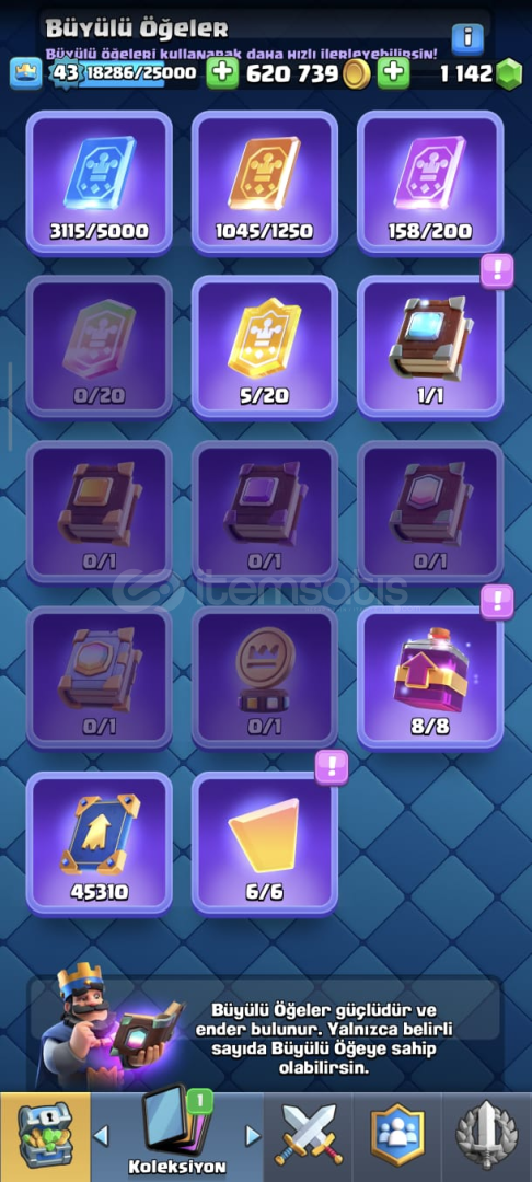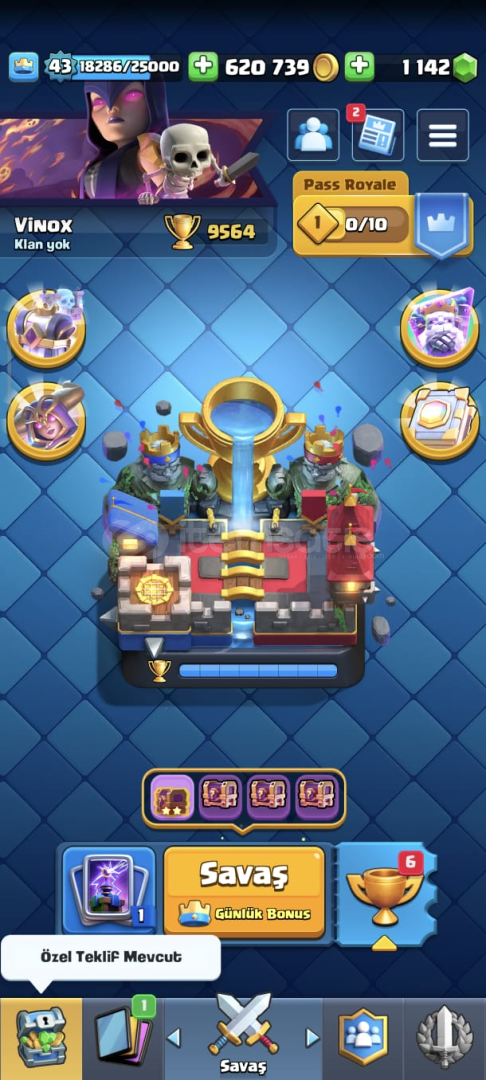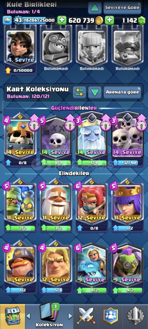 Hesaba detaylıca bakmak için:https://royaleapi.com/player/L80YCYR8Hesaplar asla geri çekilmez!Hesap koruması aktif değildir!Yeni güncelleme sebebiyle sezon geçişlerinde CLASH ROYALE HESAPLARINDA kupa kaybı yaşanabiliyor bilginize.Fiyatlandırmalar genel piyasa aşşağısı olduğu için fiyatlar sondur.