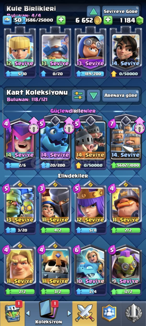 Hesaba detaylıca bakmak için: https://royaleapi.com/player/QGRYCQPRHesaplar asla geri çekilmez!Hesap koruması aktiftir!Yeni güncelleme sebebiyle sezon geçişlerinde CLASH ROYALE HESAPLARINDA kupa kaybı yaşanabiliyor bilginize.Sipariş Sonrasında oluşacak sonular için kalıcı destek!"Neden beni tercih etmelisiniz?"+660 Başarılı işlem.Yüksek müşteri memnuniyeti.Supercell oyunu i&cced...