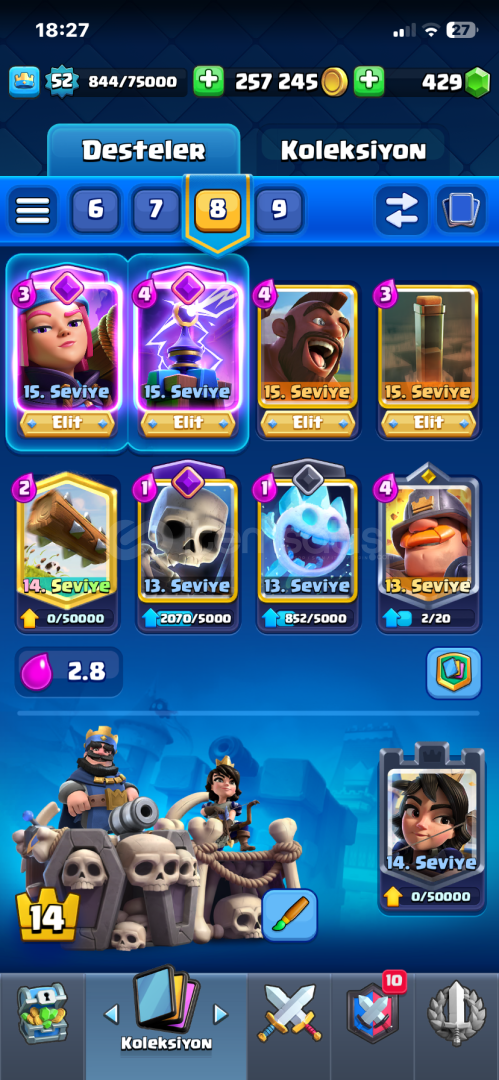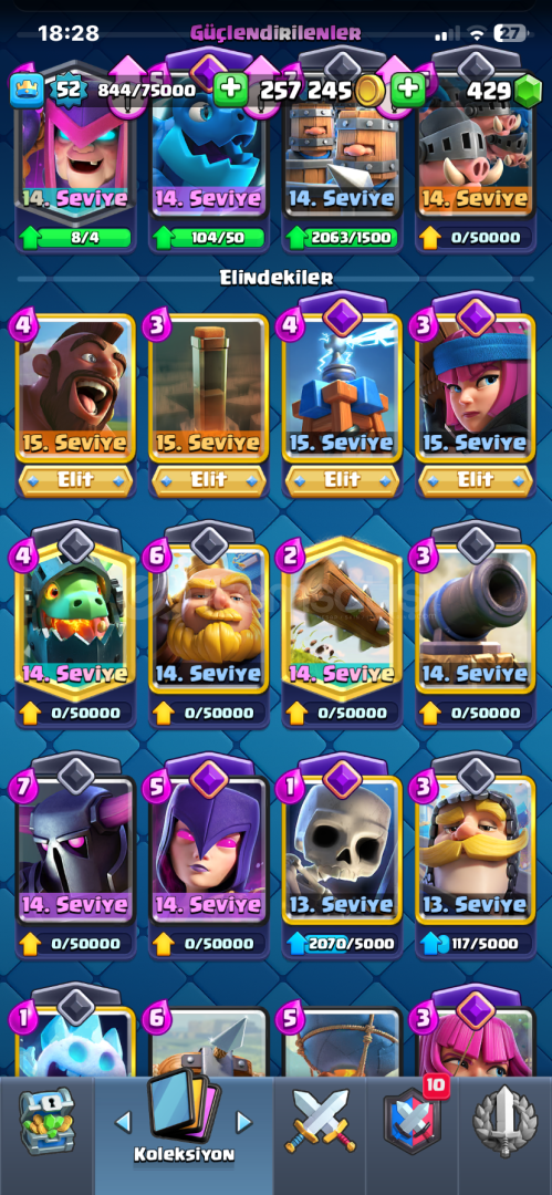 9500 kupa52 seviye121 kart10 tane evrimfişekçicadıteslaelektro ejderkoçbaşıbombacıokçularbüyücüiskeletlerbarbarlar4 tane elit kartbinicifişekçitesladeprem
