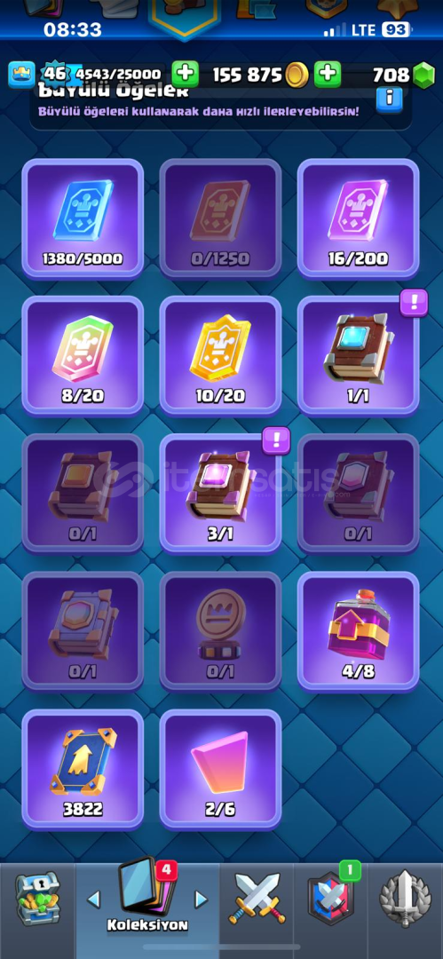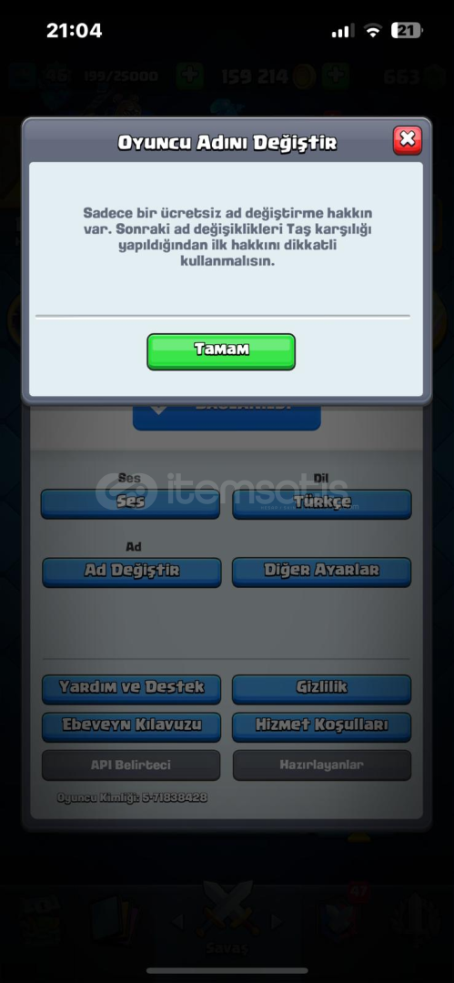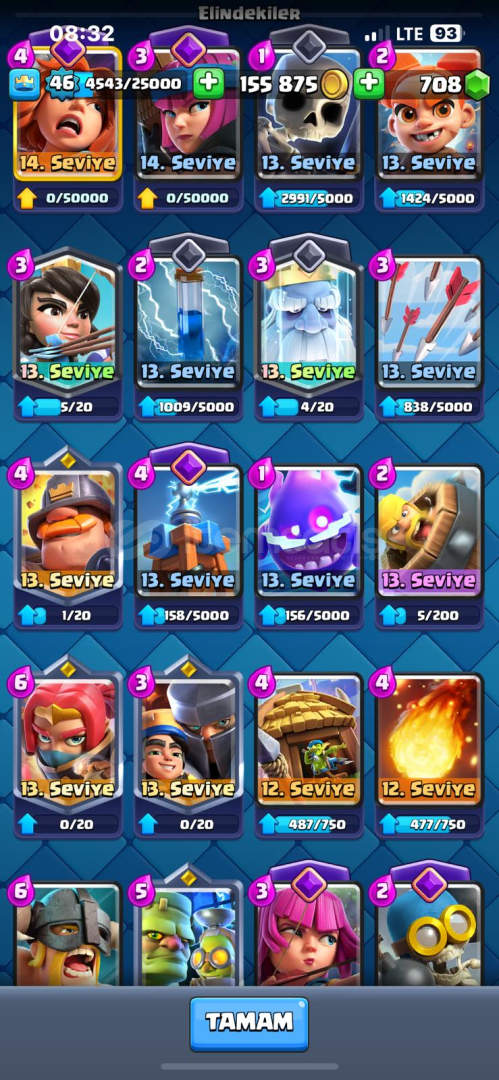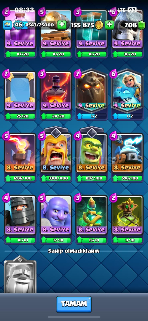 Hesap Hakkında BilgilerKeşiş dışında bütün kartlar mecvut.700 Elmas vardır.46 seviyedir.9 Tane evrim vardır.Ücretsiz isim değiştirme hakkı vardır. 💎 Hesap Güvenliği ve Teslimat Bilgileri 💎Telefon Onayı: Hesaba henüz bir telefon numarası bağlanmamıştır. Güvenliğinizi kendiniz sağlamak için ilk adımı siz atın!Anında T...